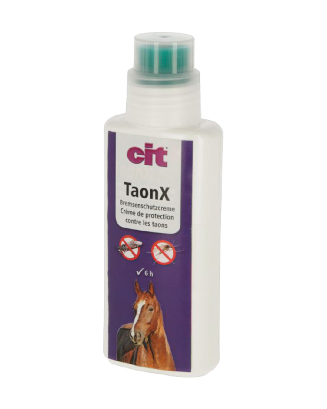 Entdecke den Insektenschutz Bremsencreme TaonX von cit, eine effektive Repellentcreme, die deinem Pferd sofortigen Schutz gegen Bremsen, Pferdefliegen, Stechmücken und andere Arthropoden bietet.