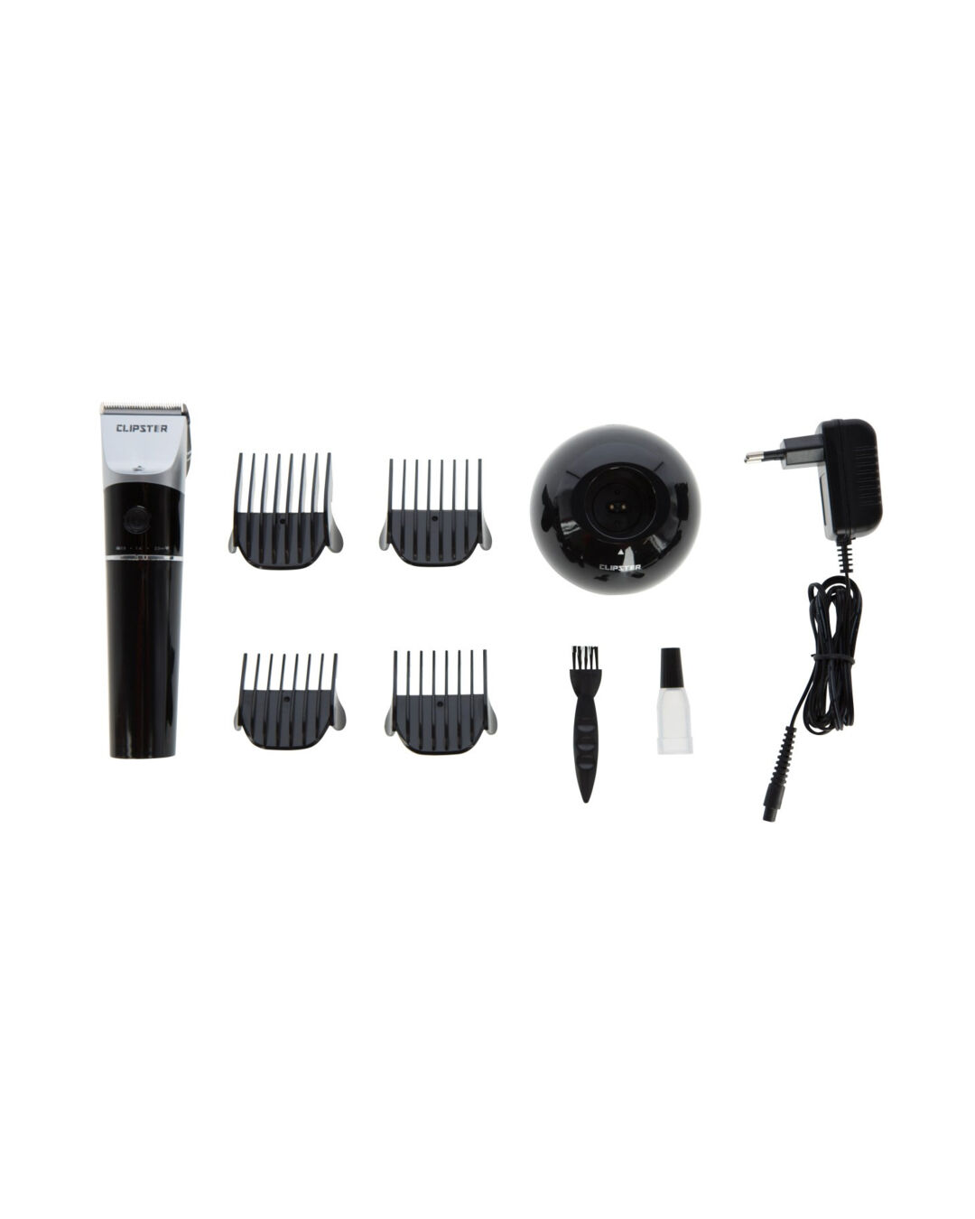 Lieferumfang: 1x Akku-Schermaschine DeloX, 4x Aufsteckkamm (3, 6, 9, 12 mm), 1x Reinigungsbürste, 1x Netzteil, 1x Ladestation, 1x Öl, 1x Bedienungsanleitung.