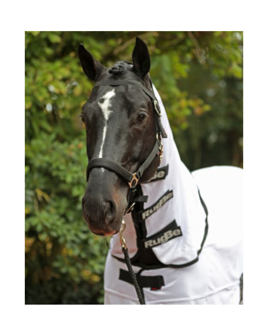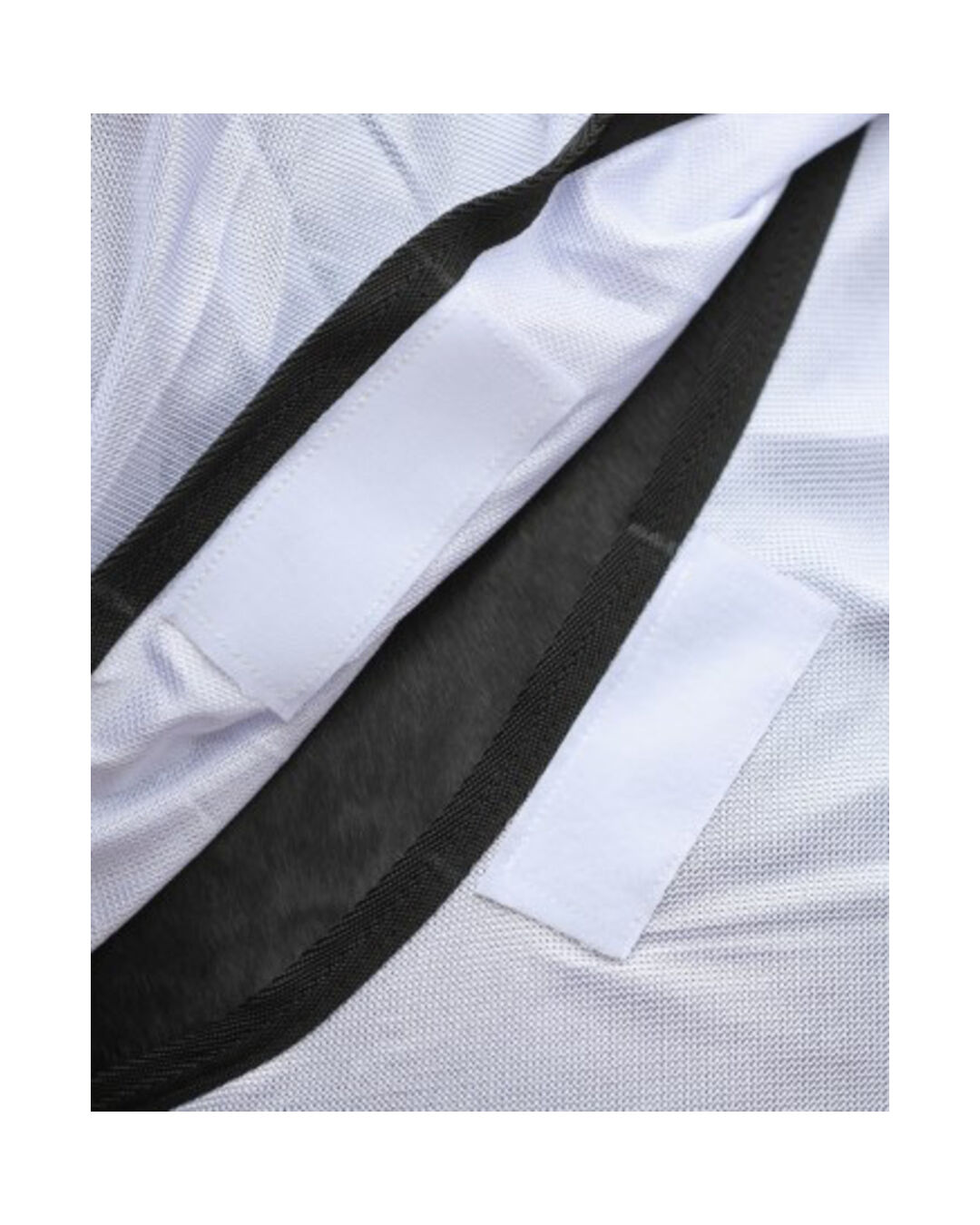 Das engmaschige, weiche Polyester gewährleistet perfekten Schutz gegen lästige Fliegen, Stech- und Beißinsekten, während das abnehmbare Halsteil und die abnehmbaren, elastischen Beinschnüre ein Verrutschen der Decke verhindern.