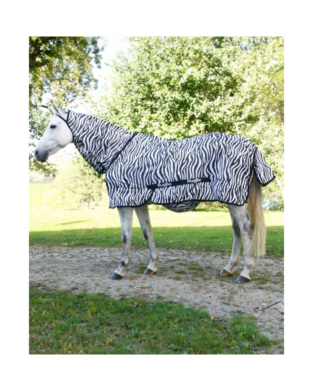 Die Fliegen- & Ekzemerdecke RugBe Zebra von Covalliero bietet nicht nur einen hervorragenden Schutz gegen lästige Fliegen, Stech- und Beißinsekten, sondern besticht auch durch ihr auffälliges Zebra-Look Design, das zusätzlich eine abschreckende Wirkung auf Insekten hat.