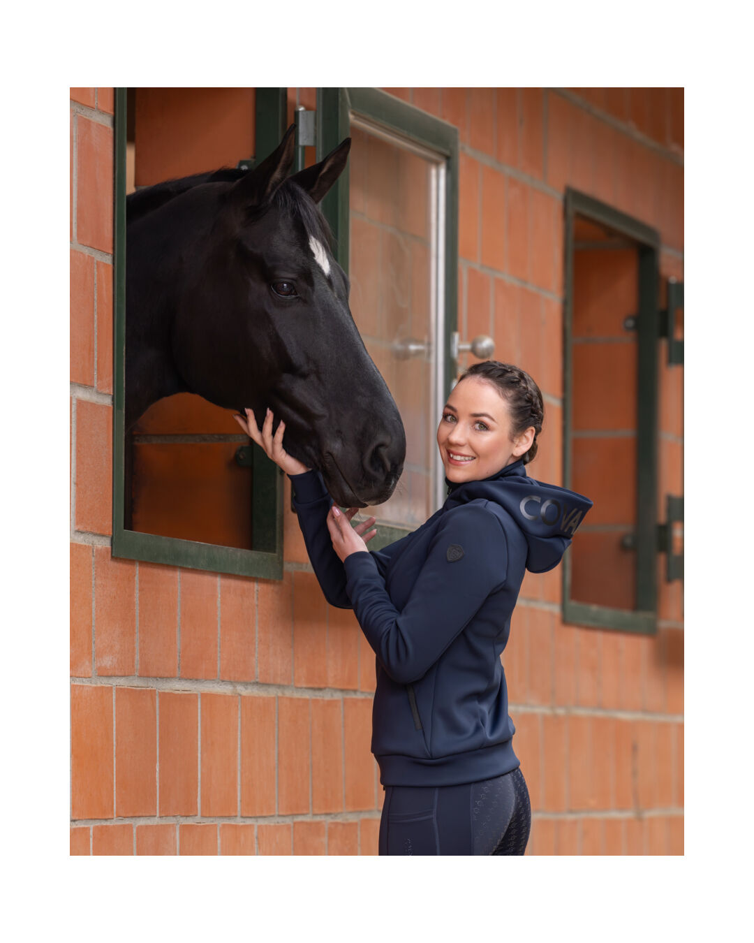 Die Hoody Jacke von Covalliero kombiniert sportliche Funktionalität mit einem femininen Look – perfekt für Stall, Freizeit und Alltag.