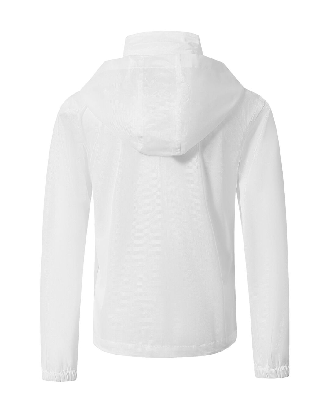 Für zusätzlichen Komfort ist die Kapuze im Kragen verstaubar und kann bei Bedarf schnell herausgenommen werden. Die seitlichen Gummizugkordeln ermöglichen eine individuelle Anpassung, während der elastische Bund an den Ärmeln verhindert, dass Wasser oder Wind eindringen. Zwei Einschubtaschen mit Reißverschluss bieten ausreichend Platz für Schlüssel, Handy oder Leckerlis für dein Pferd.