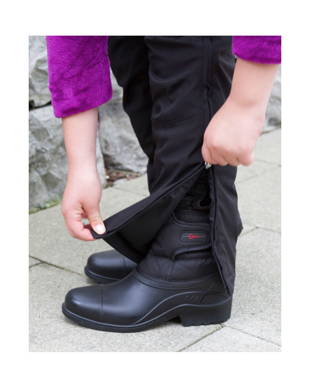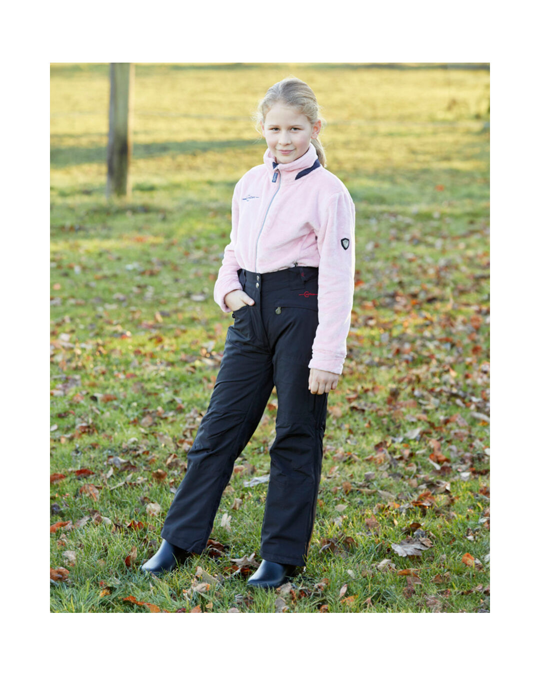Ein besonderes Highlight sind die komplett öffnenden Reißverschlüsse an den Beinaußenseiten, die das An- und Ausziehen zum Kinderspiel machen. Der flexible Bund mit Klettverschluss und Gummizug ermöglicht eine individuelle Anpassung, sodass die Hose stets perfekt sitzt. Mit einer Wassersäule von 8.000 mm ist sie stark wasserabweisend und gleichzeitig atmungsaktiv, ideal für den Reitsport und andere Outdoor-Aktivitäten im Winter.