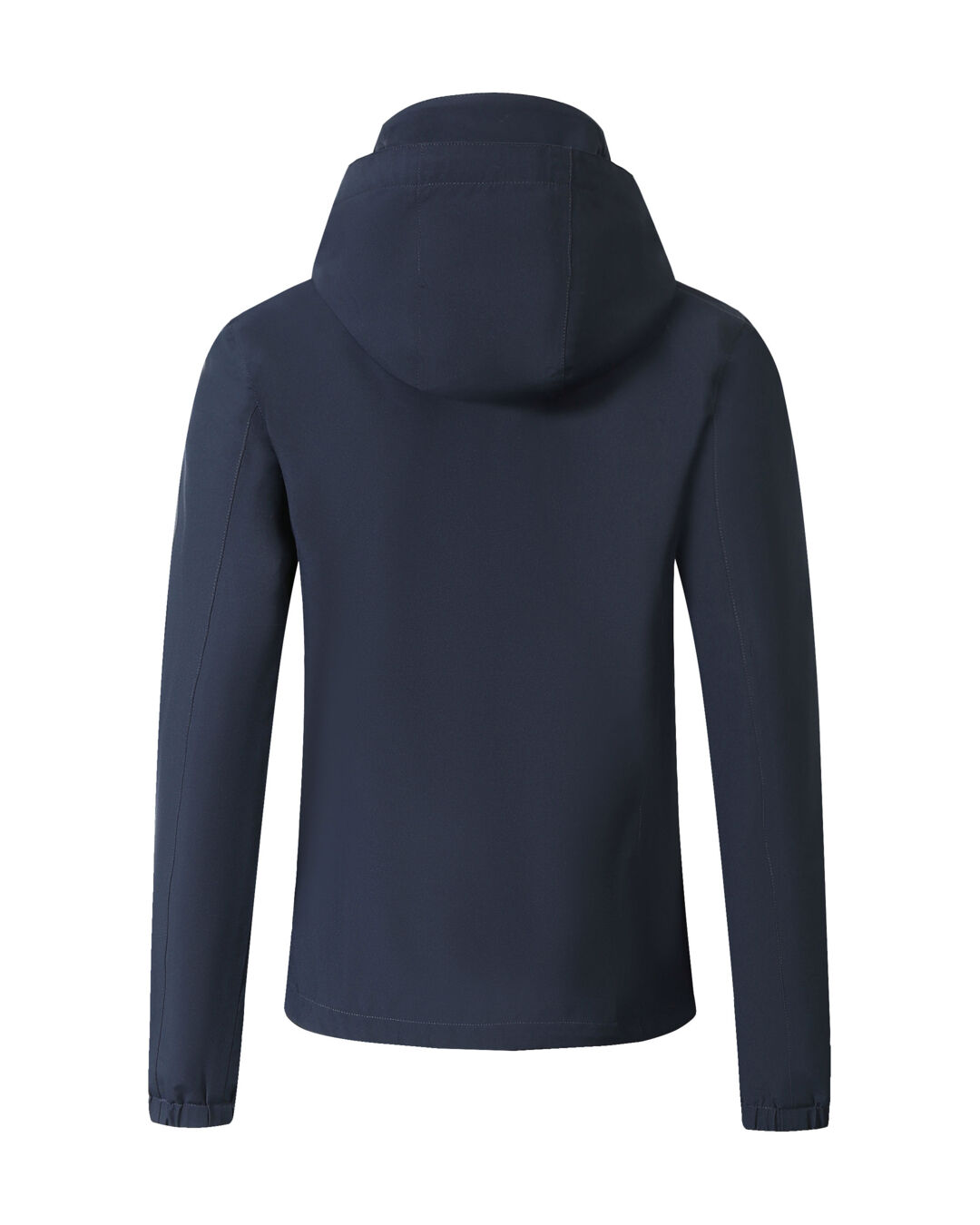 Die Regenjacke ist mit einer abnehmbaren Kapuze ausgestattet, die per Druckknopf fixiert wird – so kannst du sie bei Bedarf flexibel nutzen. Seitliche Gummizüge und ein elastischer Bund an den Ärmeln gewährleisten eine optimale Passform und verhindern, dass Wind oder Wasser eindringen.