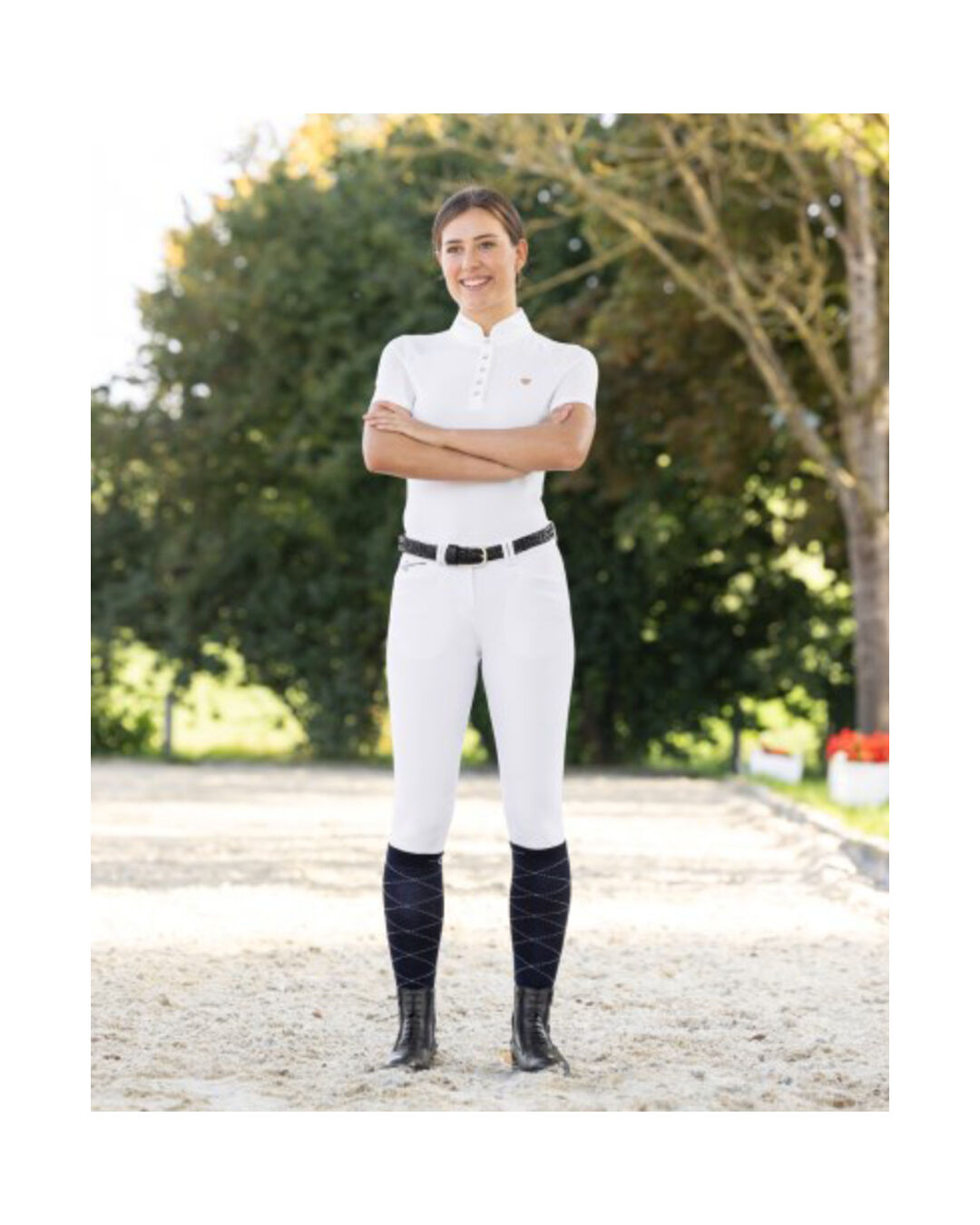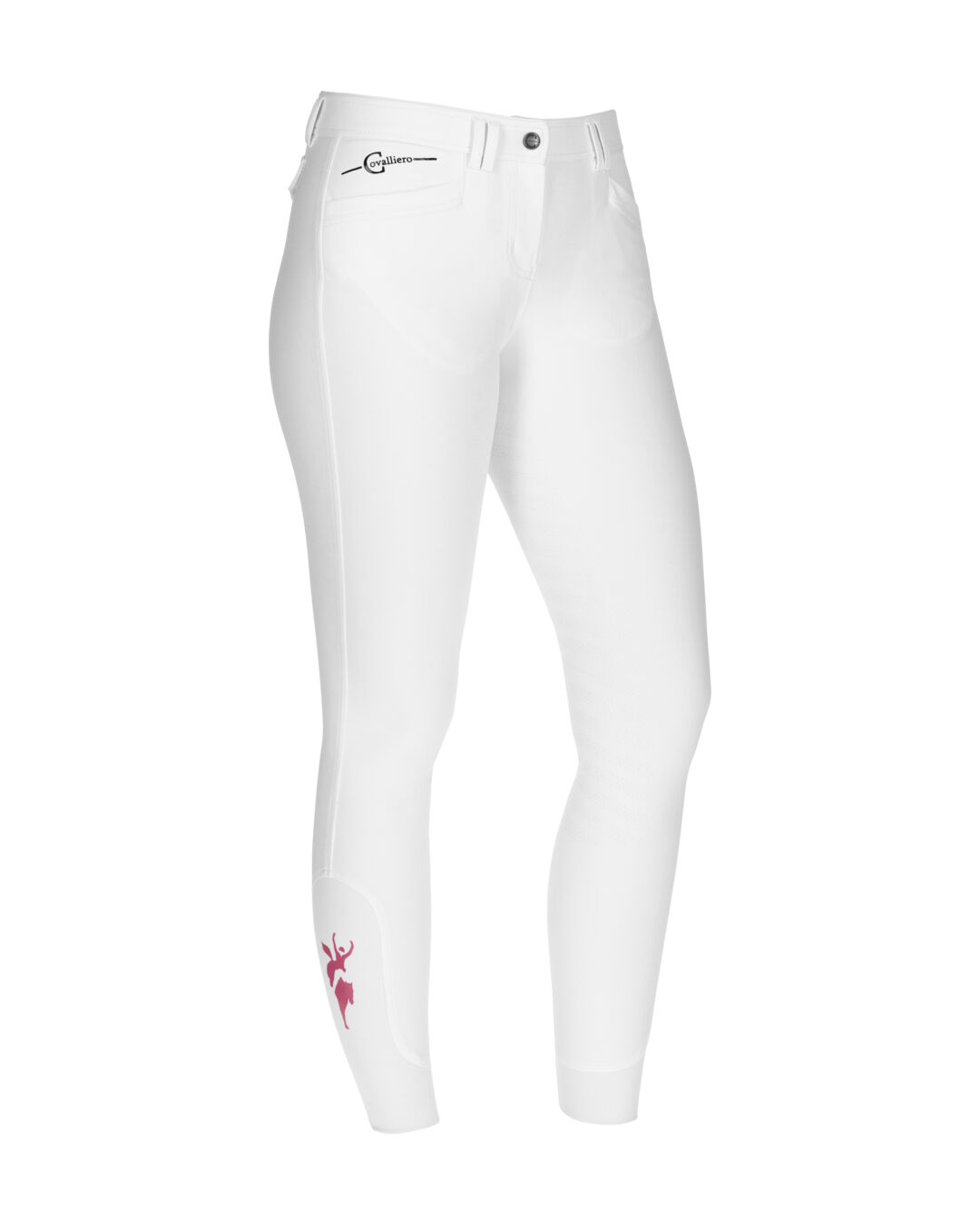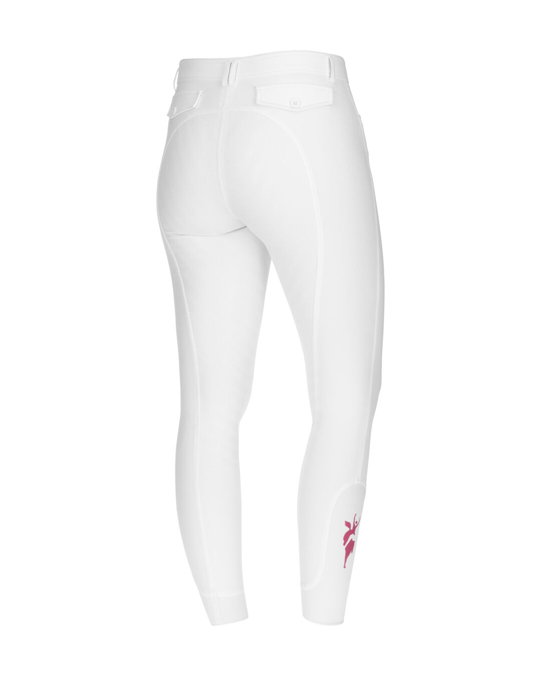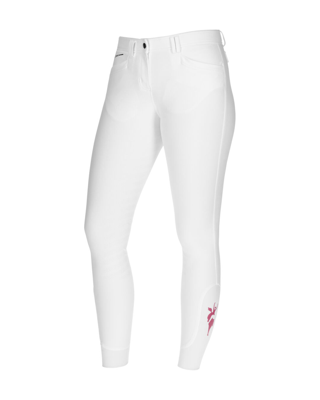 Mit dem Kauf dieser Reithose unterstützt du die PinkRibbon-Initiative, da 5 % des Händlerpreises jeder verkauften Hose an Pink Ribbon Deutschland gespendet werden. Das pinke Logo am Beinabschluss erinnert an die wichtige Bedeutung der Brustkrebsfrüherkennung.