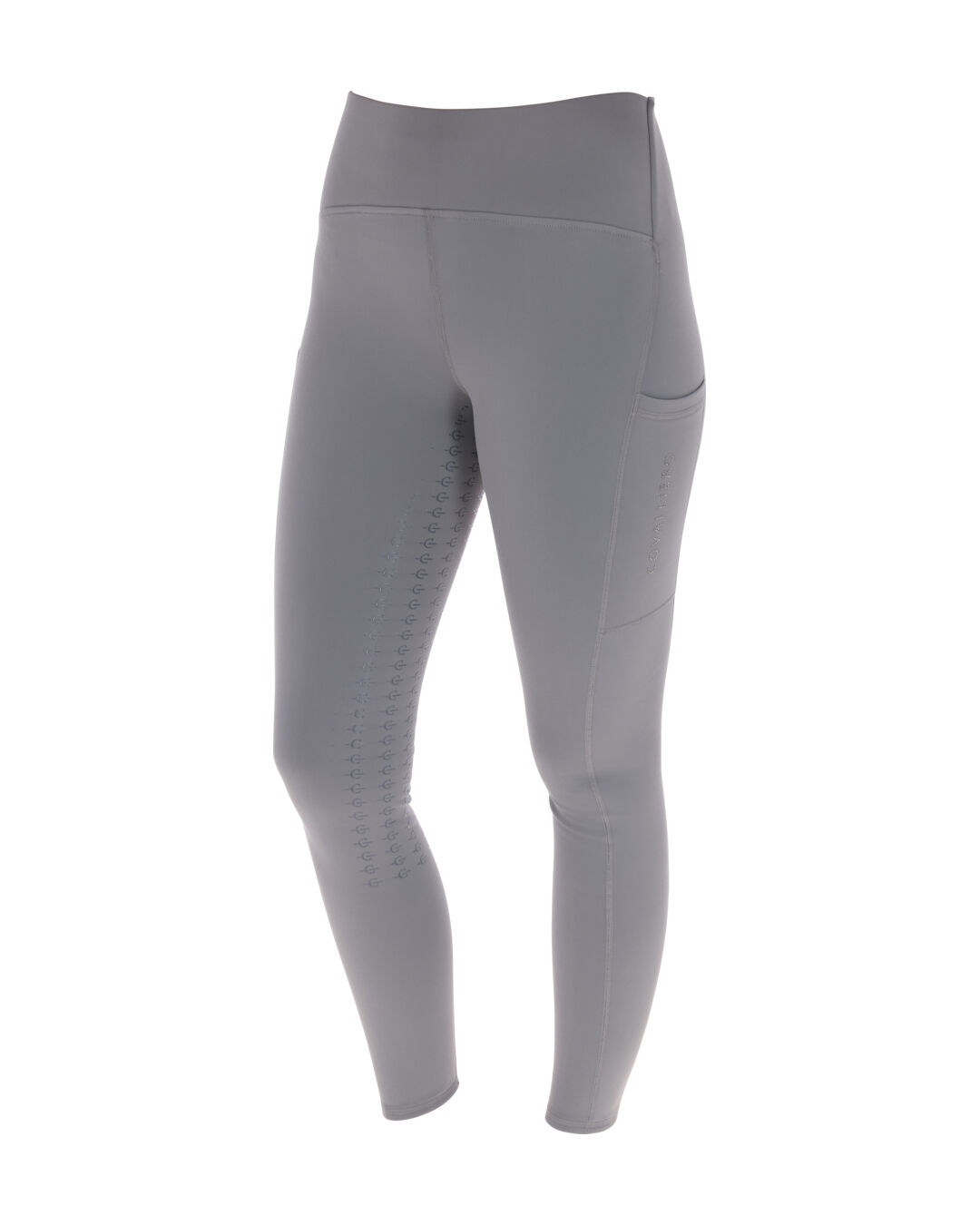 Die klimaregulierende Materialkombination ist formbeständig, atmungsaktiv und dabei angenehm weich. Der 4-Wege-Stretch sorgt für volle Bewegungsfreiheit im Sattel und im Alltag. Zwei seitliche Taschen bieten Platz fürs Handy oder Leckerlis, während die funkelnde Glitzerapplikation für einen femininen Akzent sorgt. Der Covalliero-Grip-Vollbesatz garantiert sicheren Halt im Sattel – ideal für Training und Ausritte bei kühlerem Wetter.