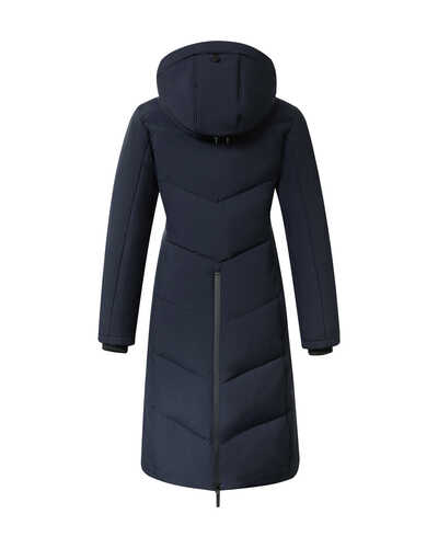 Die üppige Wattierung sorgt für ein angenehm warmes Tragegefühl, während der hoch schließende Kragen mit Logoapplikation zusätzlichen Schutz vor Wind bietet. Die Kapuze lässt sich individuell anpassen, ausklappen oder mit einem Druckknopf fixieren. Ein praktischer Reitschlitz mit Reißverschluss und Logoapplikation am Rücken garantiert Bewegungsfreiheit im Sattel.