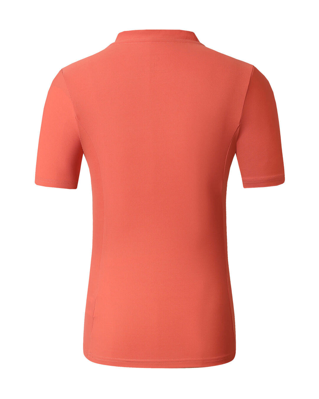 Hergestellt aus sportlichem, atmungsaktivem Piquéstoff, sorgt das Shirt für eine optimale Feuchtigkeitsregulierung. Schweiß wird schnell nach außen transportiert, sodass du auch an warmen Tagen oder bei intensiven Aktivitäten ein angenehm trockenes Tragegefühl genießt. Das Material ist besonders leicht und angenehm zu tragen, während der feminine, taillierte Schnitt deine Silhouette schmeichelhaft betont.