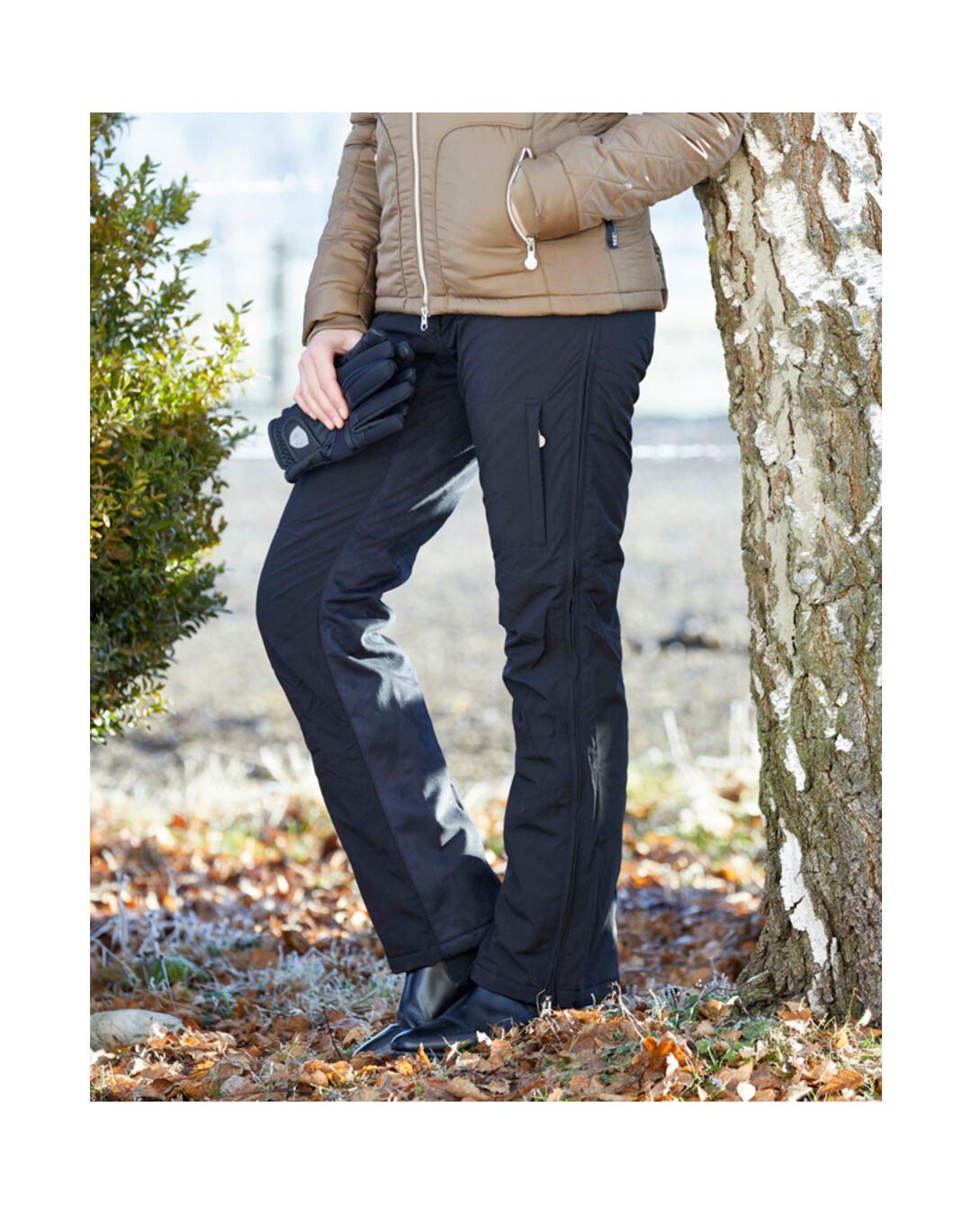 Dank der komplett öffnenden Reißverschlüsse an beiden Beinaußenseiten lässt sich die Hose leicht an- und ausziehen. Der rutschhemmende Vollbesatz sorgt für guten Kontakt zum Sattel, während der flexible Bund mit Klettverschluss und Gummizug für eine optimale Passform sorgt. Mit einer stark wasserabweisenden Eigenschaft von bis zu 8000 mm Wassersäule hält sie dich zuverlässig trocken, und die kompakte Thermovlies-Fütterung wärmt, ohne aufzutragen.