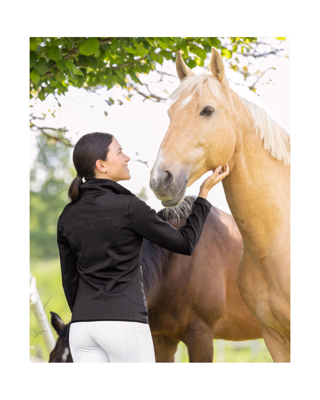 Dank des femininen, taillierten Schnitts sitzt die Jacke perfekt am Körper, ohne die Bewegungsfreiheit einzuschränken. Das 4-Wege-elastische Material sorgt für maximale Flexibilität, sodass du dich beim Reiten, in der Stallarbeit oder im Alltag uneingeschränkt bewegen kannst. Gleichzeitig bietet der 2-Wege-Reißverschluss noch mehr Anpassungsmöglichkeiten und macht die Jacke besonders vielseitig.