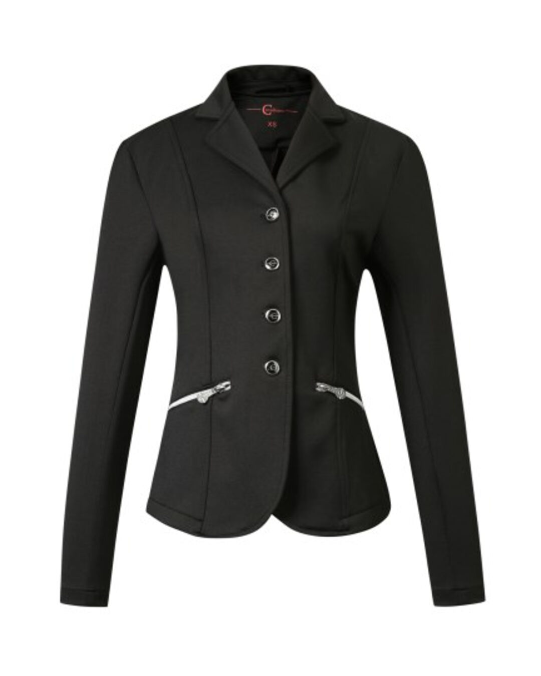 Optisch punktet das Sakko mit den eleganten Covalliero-Knöpfen und dem stilvollen Wappen. Die beiden Reitschlitze hinten und die praktischen Außentaschen mit Reißverschluss ergänzen das funktionale Design. Selbstverständlich ist das Turniersakko pflegeleicht und kann bei 30 °C in der Maschine gewaschen werden.