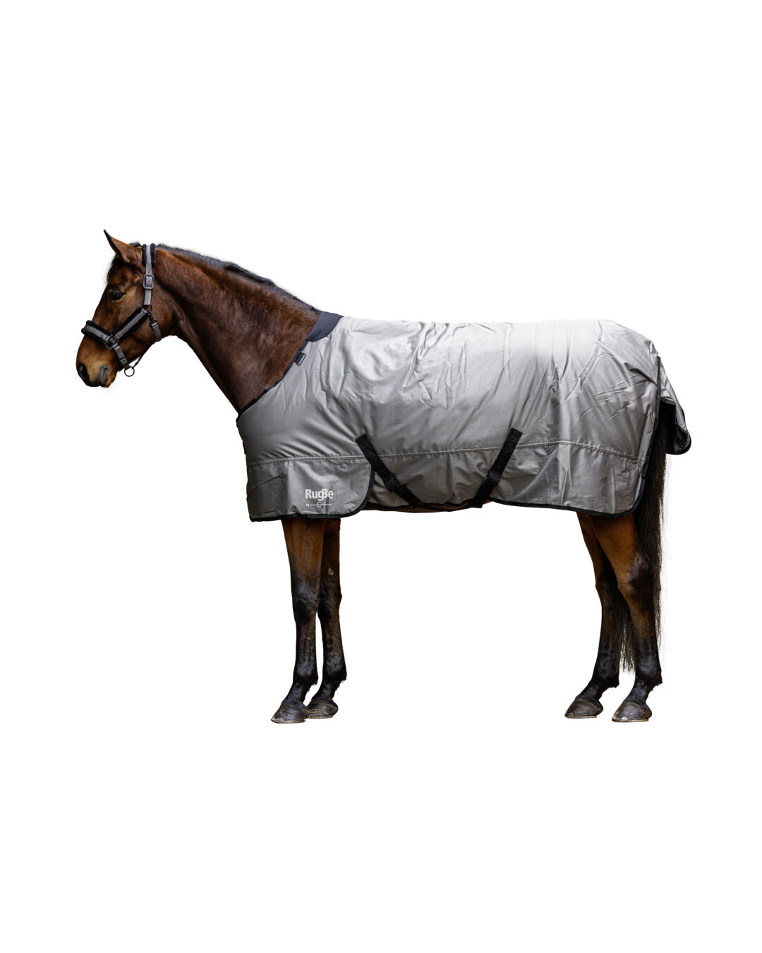 Das robuste 600 Denier Polyester-Obergewebe ist stark wasserabweisend (bis 5.000 mm Wassersäule) und gleichzeitig atmungsaktiv (3.000 g/m²/24 h), um einen Hitzestau zu verhindern. Die dicke 300 g Thermovlies-Füllung sorgt für optimale Wärmeisolation, während das glatte Innenfutter besonders fellschonend ist. Durchdachte Details wie eine gepolsterte Widerristpartie aus Synthetikkautschuk, Beinschnüre und ein Schweiflatz sorgen für Komfort und sicheren Sitz – selbst bei aktivem Toben auf dem Paddock.