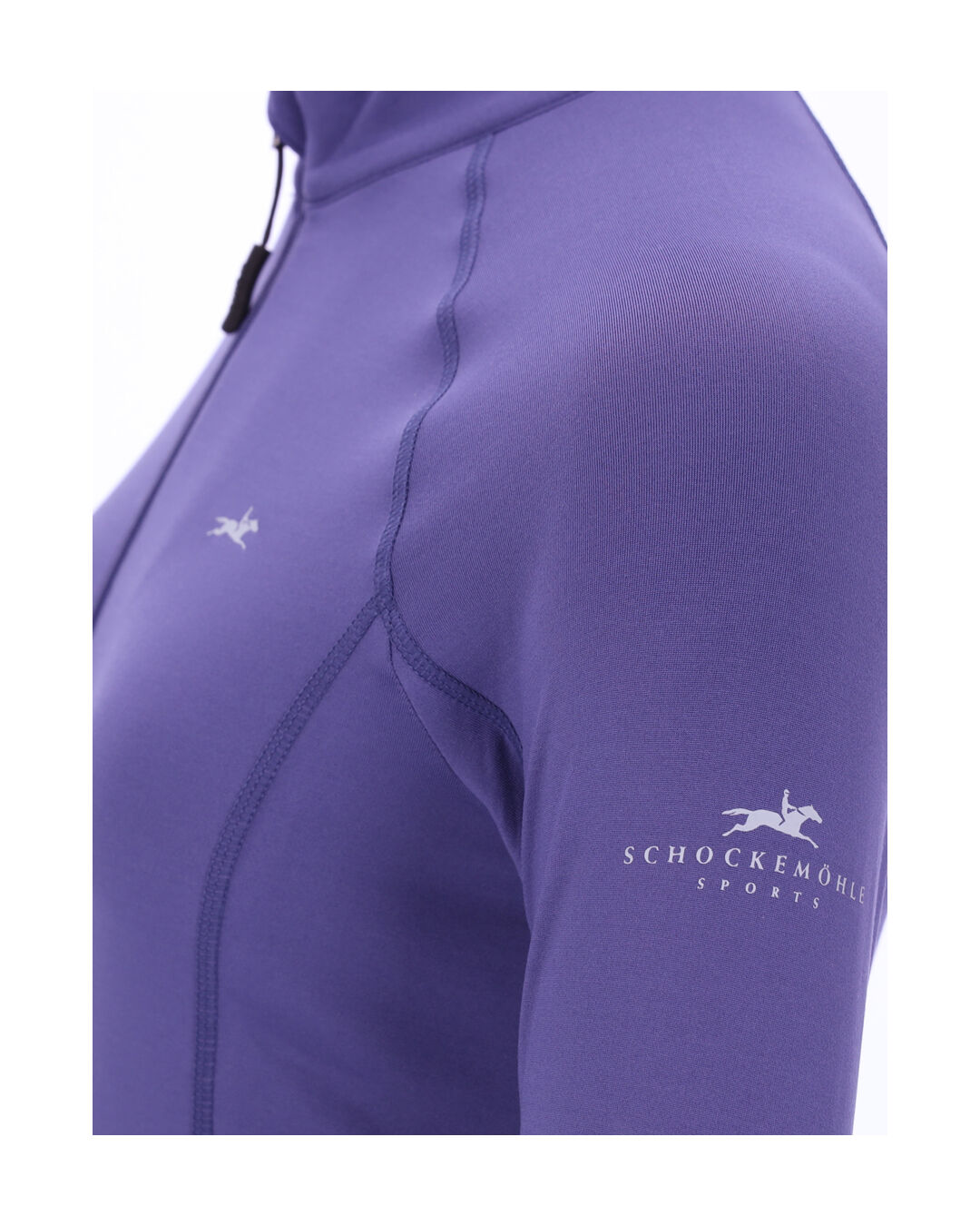 Das weiche, elastische Material bietet angenehmen Tragekomfort und passt sich jeder Bewegung an. Die sportlichen Raglanärmel sorgen für maximale Bewegungsfreiheit, während formgebende Teilungsnähte mit dekorativen Overlock-Details einen femininen Look unterstreichen. Der Stehkragen mit Reißverschluss bietet je nach Wetter variable Belüftung.