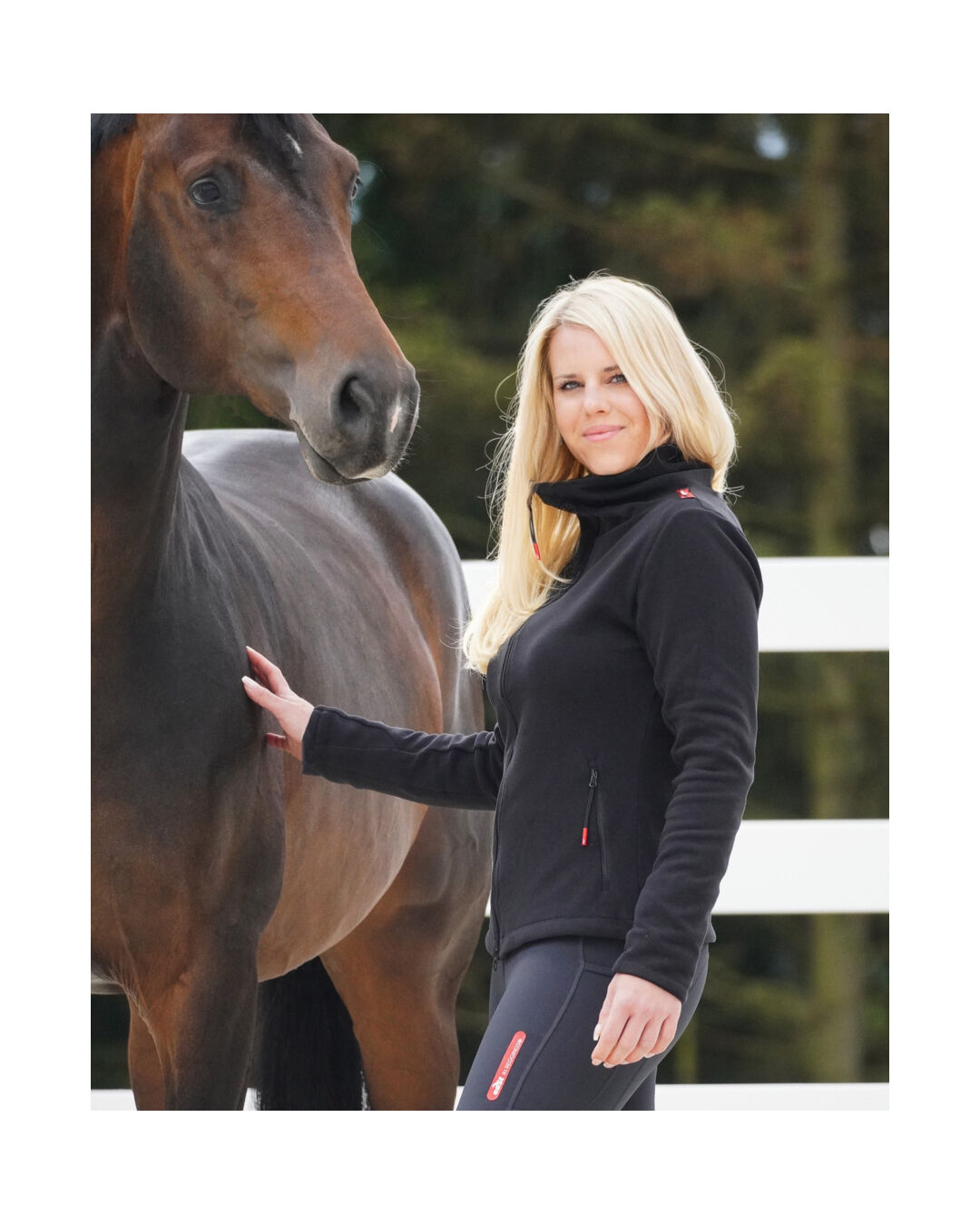 Diese vielseitige Jacke ist aus superweichem Fleece gefertigt, das ein luxuriöses Tragegefühl verspricht. Du wirst dich sofort wohlfühlen, ob zu Hause oder unterwegs mit deinem Pferd.