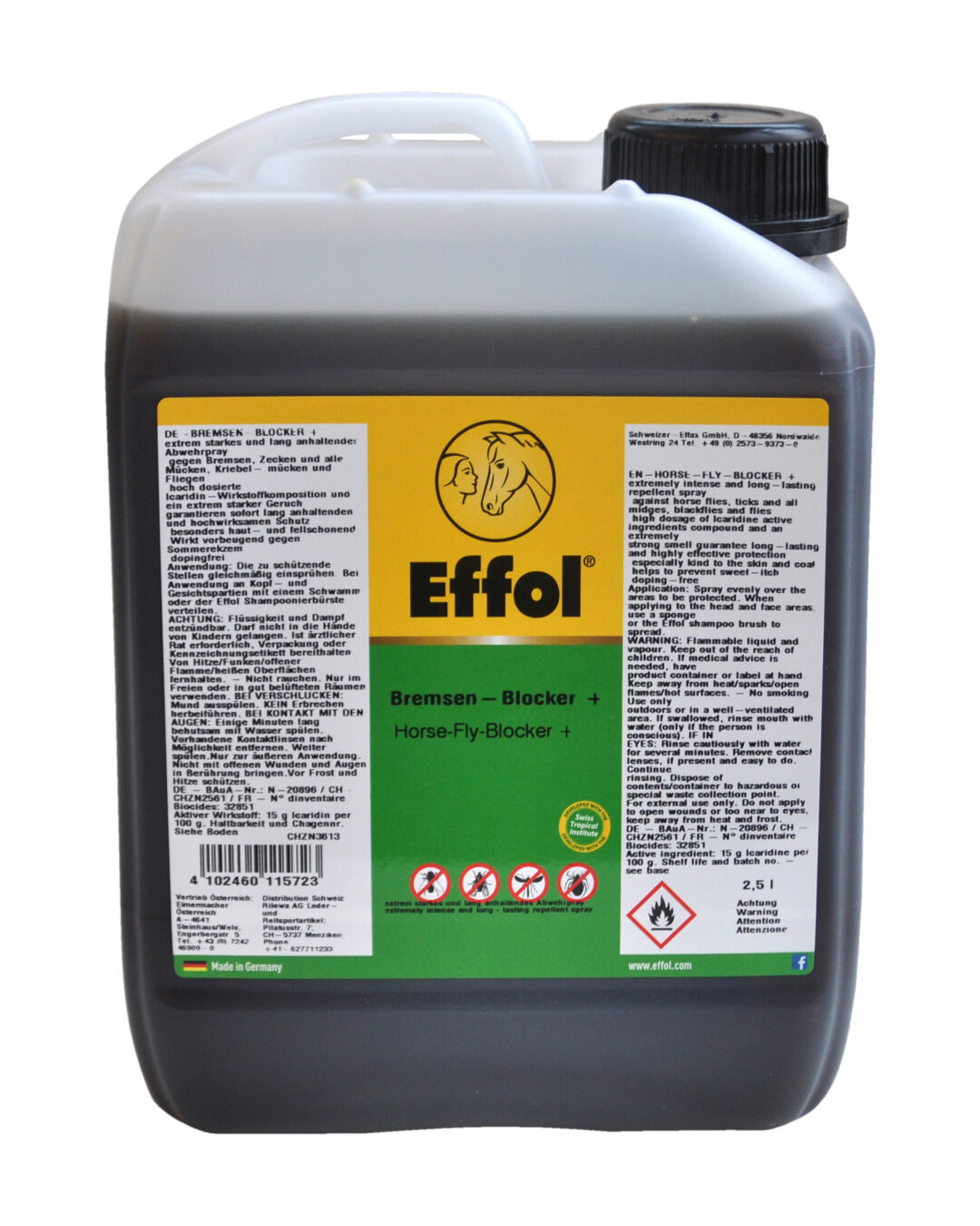 Die lang anhaltende Rezeptur wurde in Zusammenarbeit mit dem Schweizer-Tropeninstitut zum Schutz vor Bremsen, Zecken, Mücken und Fliegen entwickelt und wirkt vorbeugend gegen Sommerekzem. Reiter in über 50 Ländern vertrauen auf den wirkungsvollen Effol Bremsen-Blocker+.