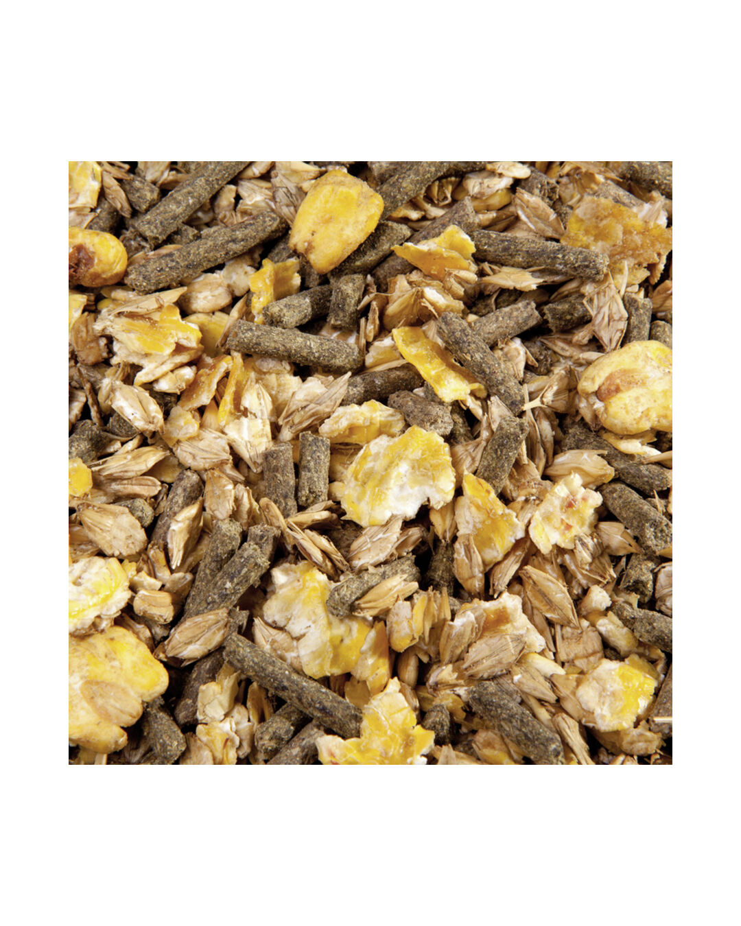 Die Rezeptur enthält alle wichtigen Nährstoffe, um den täglichen Kraftfutterbedarf deines Pferdes schon in geringer Dosierung zu decken. Dank reduzierter Eiweiß- und Energiegehalte entlastet es den Stoffwechsel und empfiehlt sich für alle weniger beanspruchten Pferde und Ponys als alleiniges Krippenfutter oder als Ergänzung zu Getreide.