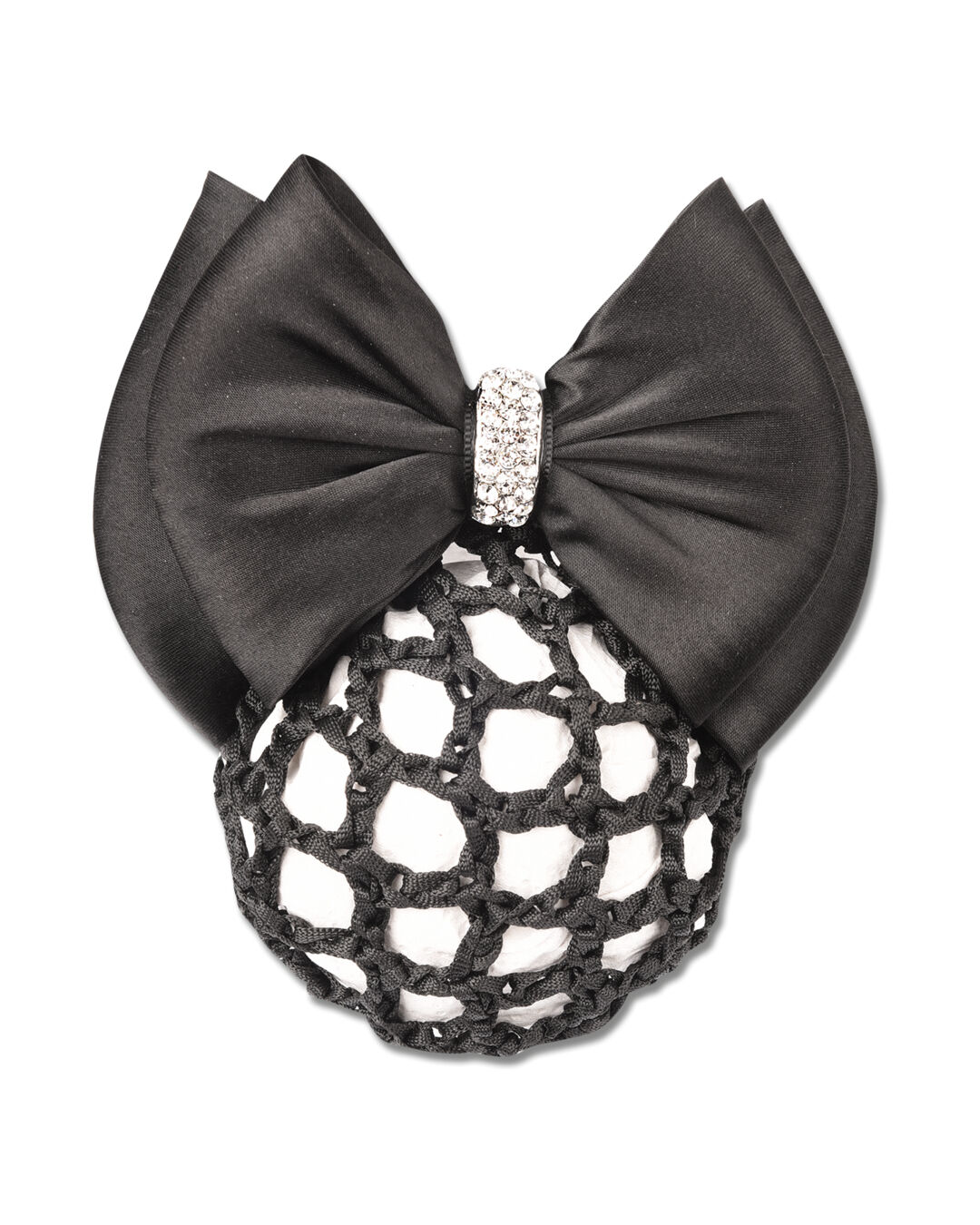 Dieses Haarnetz zeichnet sich durch eine attraktive Spange aus, die mit einem kleinen, silberfarbenen Ring und einer Füllung aus Schmucksteinen verziert ist. Die Schleife verleiht dem Haarnetz eine zusätzliche dekorative Note