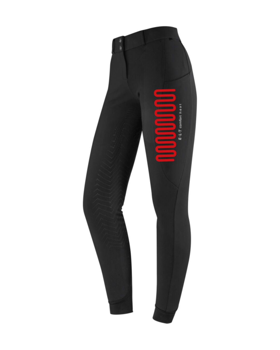Eiskalte Winterausritte? Kein Problem mehr mit der Heizreithose Comfort Heat von ELT! Diese Reithose wärmt dich genau dort, wo du’s brauchst – an den Oberschenkeln und im unteren Rückenbereich – und das ganz ohne dicken Zwiebellook.