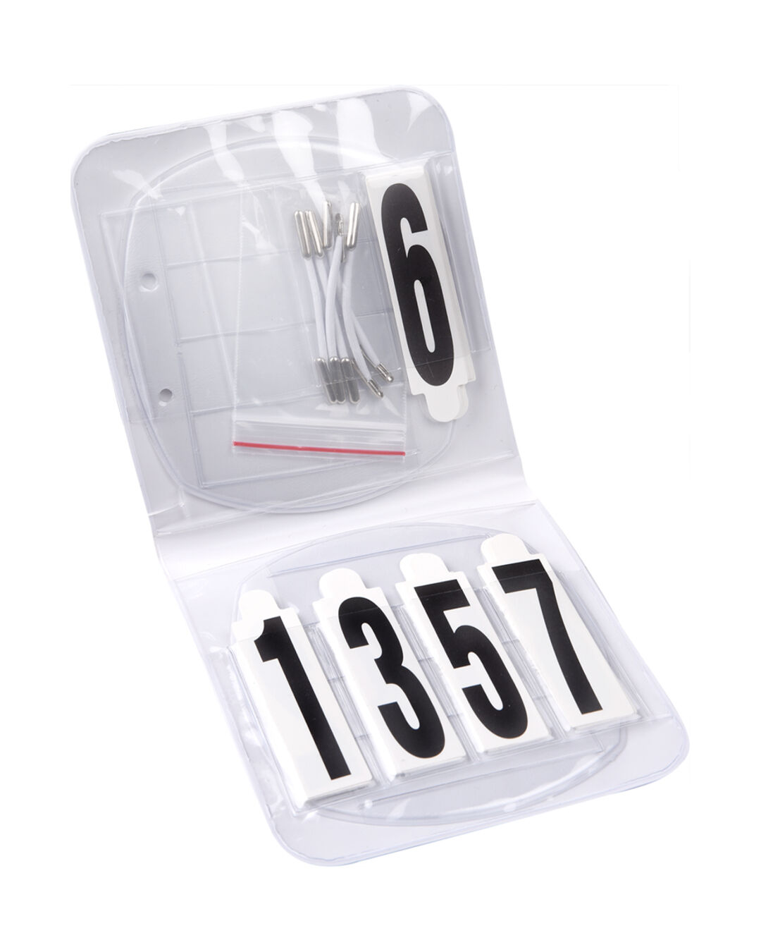 Die perfekten Begleiter auf jedem Turnier! Kopfnummern aus weichem Kunststoff ohne Kanten für den empfindlichen Pferdekopf. Unkompliziertes Wechseln der Startnummer. Verstellbar von 1-9999. Inkl. Gummibändern zur Befestigung. Paar.