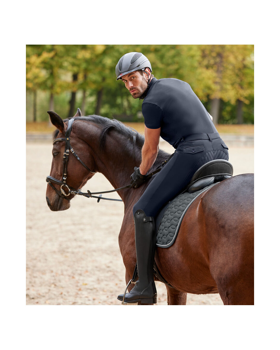 Diese sportliche herren-Reithose ist nicht nur ein optischer Hingucker, sondern auch funktional durchdacht. Der Silikon-Vollbesatz bietet dir außergewöhnlichen Halt im Sattel. Das hochelastische, gebondete Material ist formstabil, atmungsaktiv und verfügt über eine weiche Innenseite. Die bi-elastische Eigenschaft und der Kompressionseffekt sorgen für eine perfekte Passform und unterstützen deine Bewegungen beim Reiten.