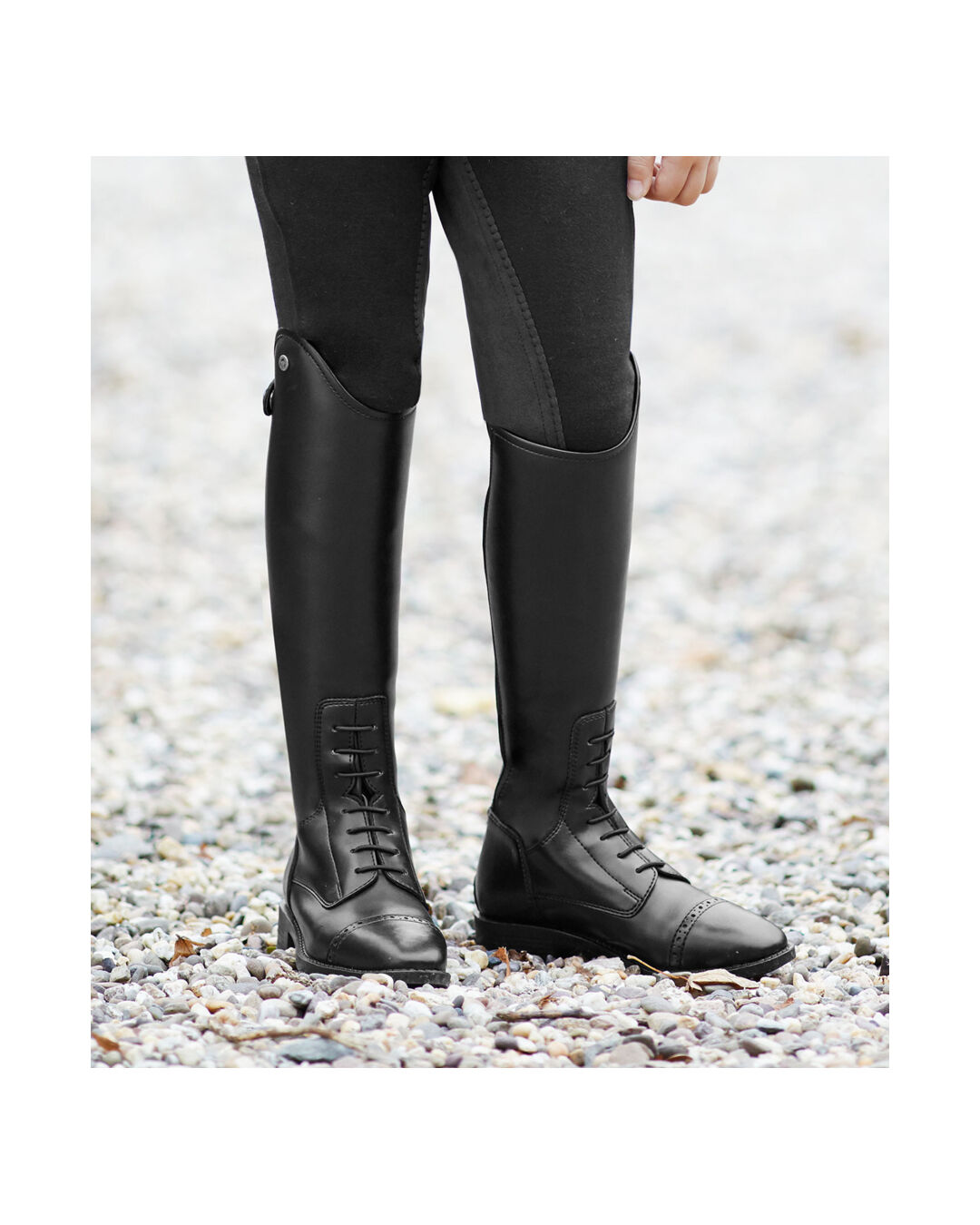 Dank des weichen Materials und der vielseitigen Größenauswahl passen diese Stiefel perfekt und bieten optimalen Tragekomfort. Sie zeichnen sich durch eine sportliche Schnüroptik im Mittelfußbereich aus, die nicht nur stilvoll wirkt, sondern auch für eine individuelle Anpassung sorgt. Das leicht zu reinigende Außenmaterial macht die Pflege dieser Stiefel denkbar einfach, was besonders bei häufigem Gebrauch vorteilhaft ist. Die anatomische Passform sorgt für einen nahen Kontakt zum Pferd, was für ein präzises Reitgefühl unerlässlich ist.
