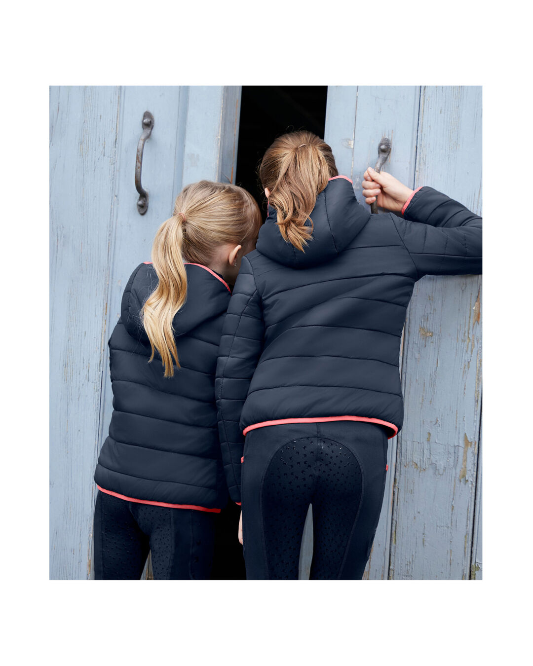 Die Steppjacke ist leicht gefüttert und mit einer abnehmbaren Kapuze ausgestattet. Die Saumabschlüsse sowie die Kapuze haben ein elastisches Piping, das die Jacke eng anliegen lässt und etwas kühleren Wind abhält. Die funktionale und schicke Jacke im Stepplook punktet mit ihrer Atmungsaktivität und dem Lucky Heart Design, das sich toll mit den anderen Produkten aus der Lucky Heart Kollektion von ELT kombinieren lässt.