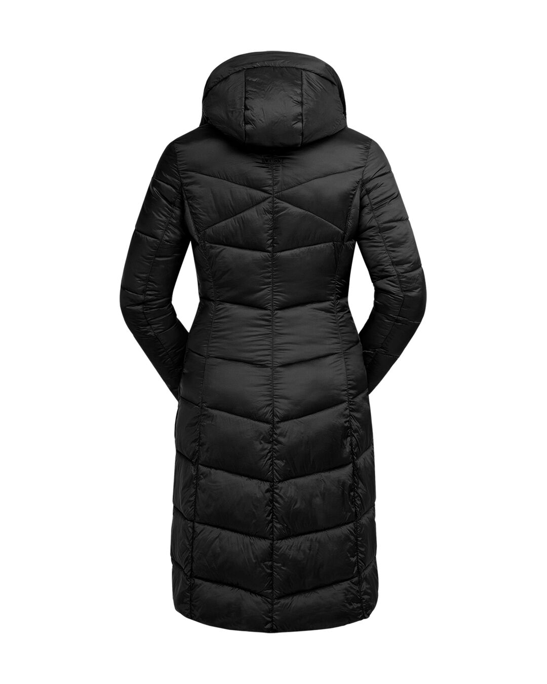 Dieser lange Steppmantel zeichnet sich durch seine wärmende, daunenartige Füllung aus, die trotz ihres leichten Gewichts hervorragende Isoliereigenschaften bietet. Die taillierte Passform sorgt für eine schmeichelhafte Silhouette, während das windabweisende Material mit leicht glänzender Optik sowohl Schutz als auch einen edlen Look garantiert.