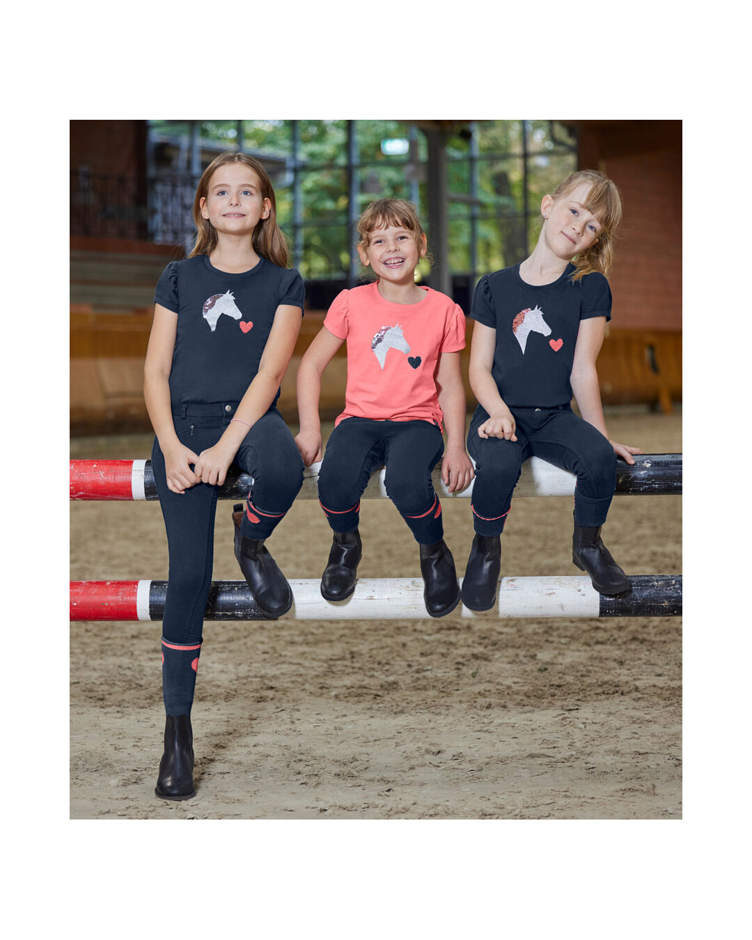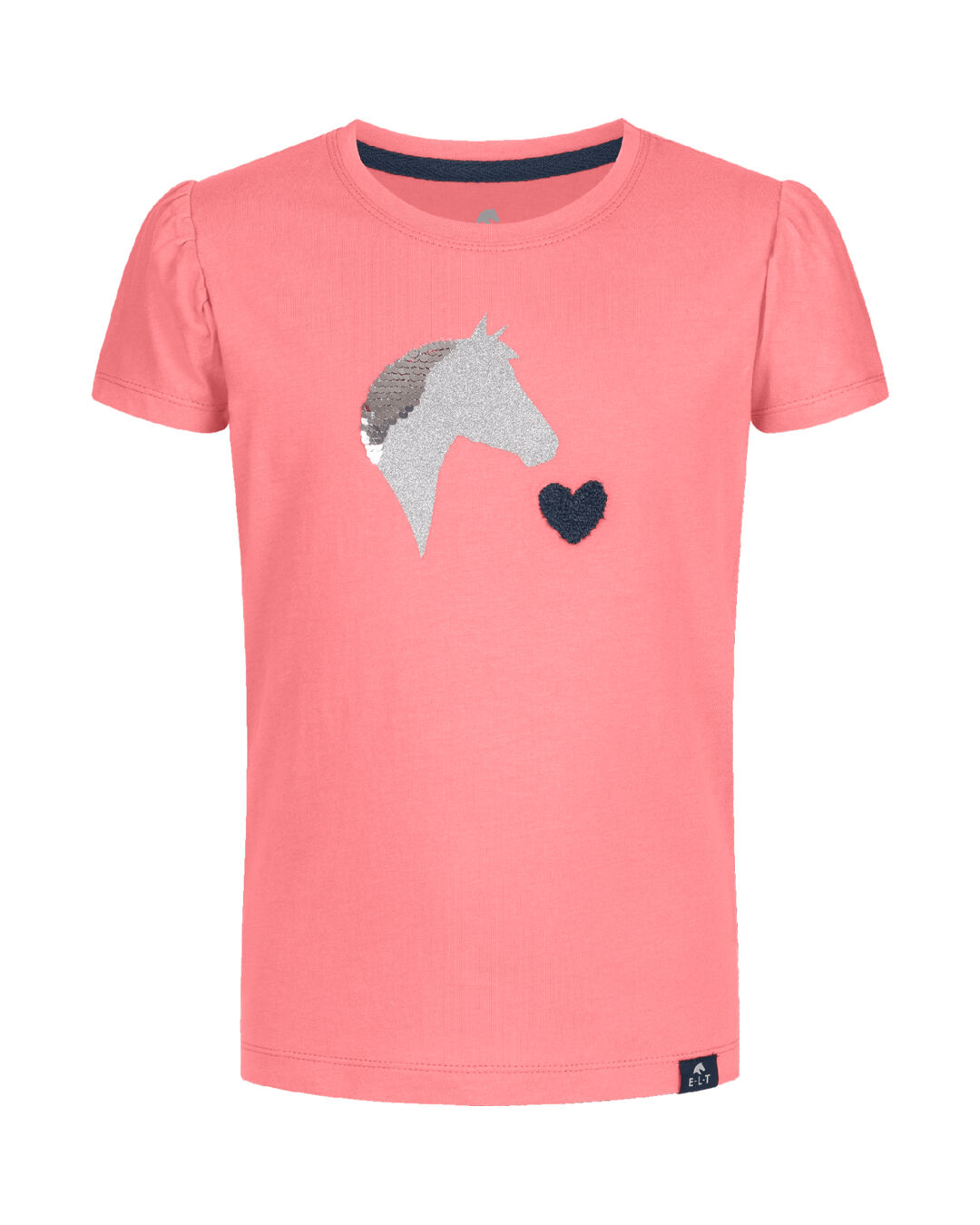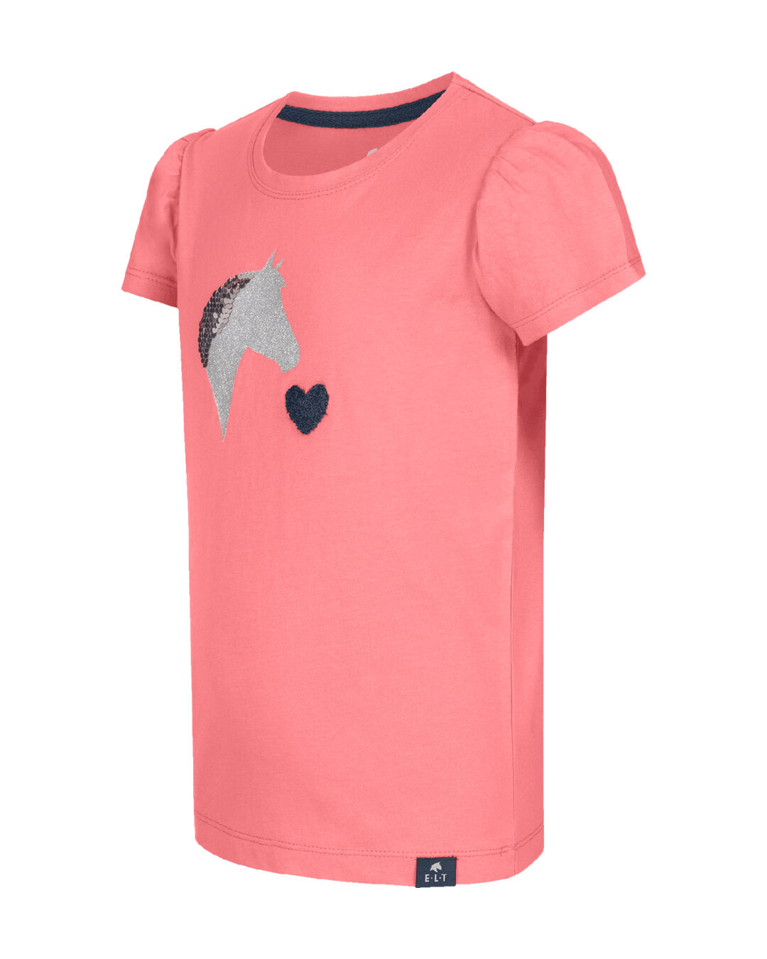 Das T-Shirt Lucky Lily von ELT ein bezauberndes T-Shirt für Reiterinnen, die Wert auf Stil und Komfort legen. Das Highlight dieses Shirts ist der Lucky Heart Logodruck, verziert mit schimmernden Wendepailletten, die einen spielerischen Effekt bieten.