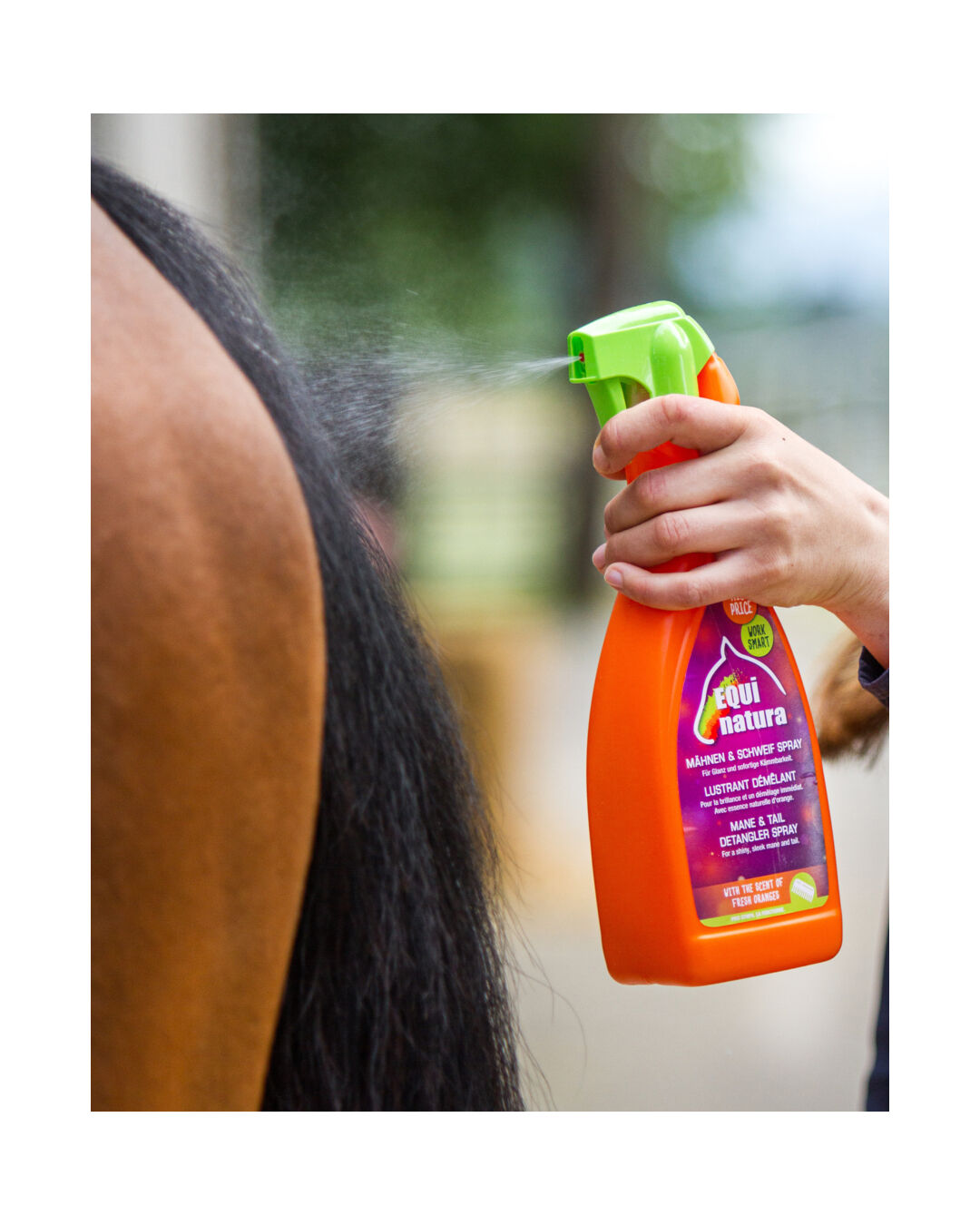Das Mähnen- & Schweifspray von EQUInatura sorgt für sofortige Kämmbarkeit und verleiht deinem Pferd einen natürlichen, seidigen Glanz.