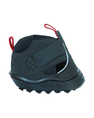 Die All Terrain Sohle und das einzigartige Profildesign mit hervorragendem Grip sorgen auch bei nassem Wetter für einen hervorragenden Grip. Das Fersendesign ermöglicht eine uneingeschränkte, natürliche Bewegung des Hufes, während die Sohle ideal dämpft und stabilisiert. Der Huf sinkt mit jedem Schritt in die Gummisohle ein, wodurch ein Vollkontakt zur Sohle entsteht. Das ist optimal für eine natürliche Blutzirkulation und Huffunktion. Die Sohlendicke beträgt, je nach Größe, 10 bis 14 mm.