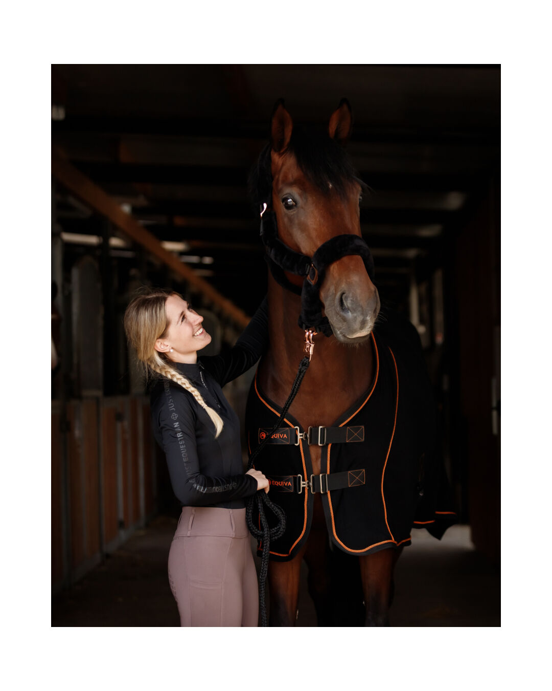 Die Abschwitzdecke Keramik Nova von EQUIVA bietet deinem Pferd nicht nur eine effiziente Trocknung nach dem Training, sondern kombiniert dies mit den positiven Effekten von Keramikpartikeln für mehr Wohlbefinden.