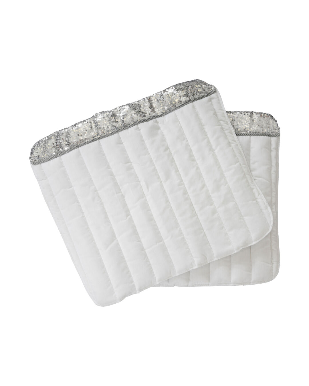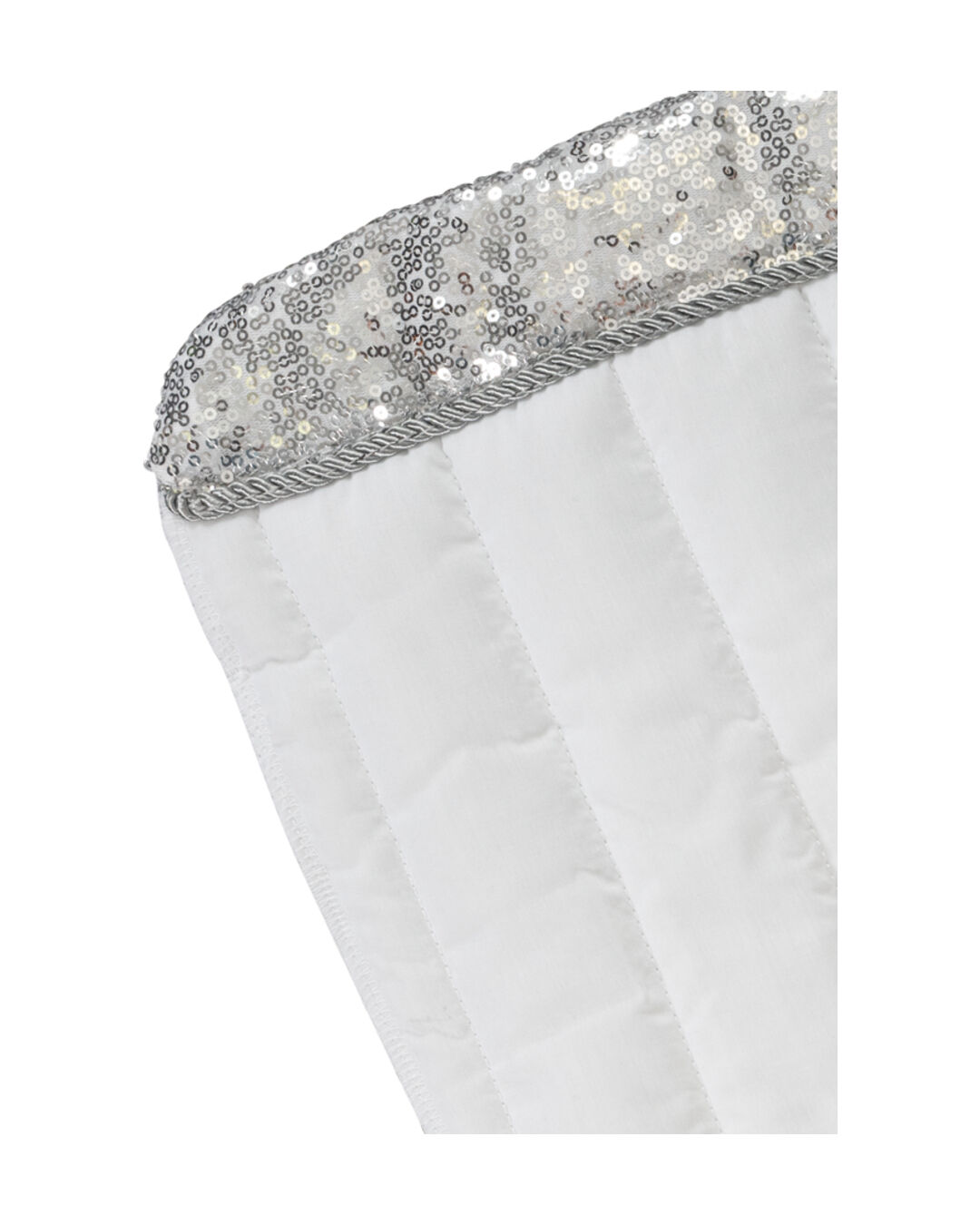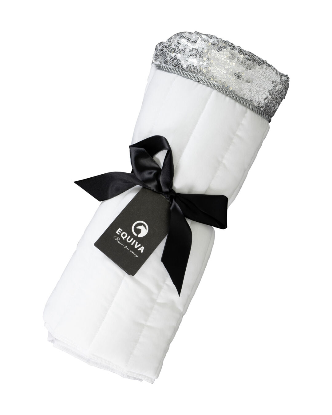 Die glitzernde Pailletten Borde und die Ton-in-Ton Zierkordel verleihen diesen Bandagierunterlagen einen edlen Look, der sich bei jeder Gelegenheit sehen lassen kann. Die Bandagierunterlagen sind so konzipiert, dass sie in Kombination mit allen Arten von Bandagen verwendet werden können. Sie sind so positionierbar, dass die glitzernde Borde als attraktive Zierde übersteht, während die Unterlage selbst ausreichend lang ist, um einen umfassenden Schutz des Pferdebeins zu gewährleisten.