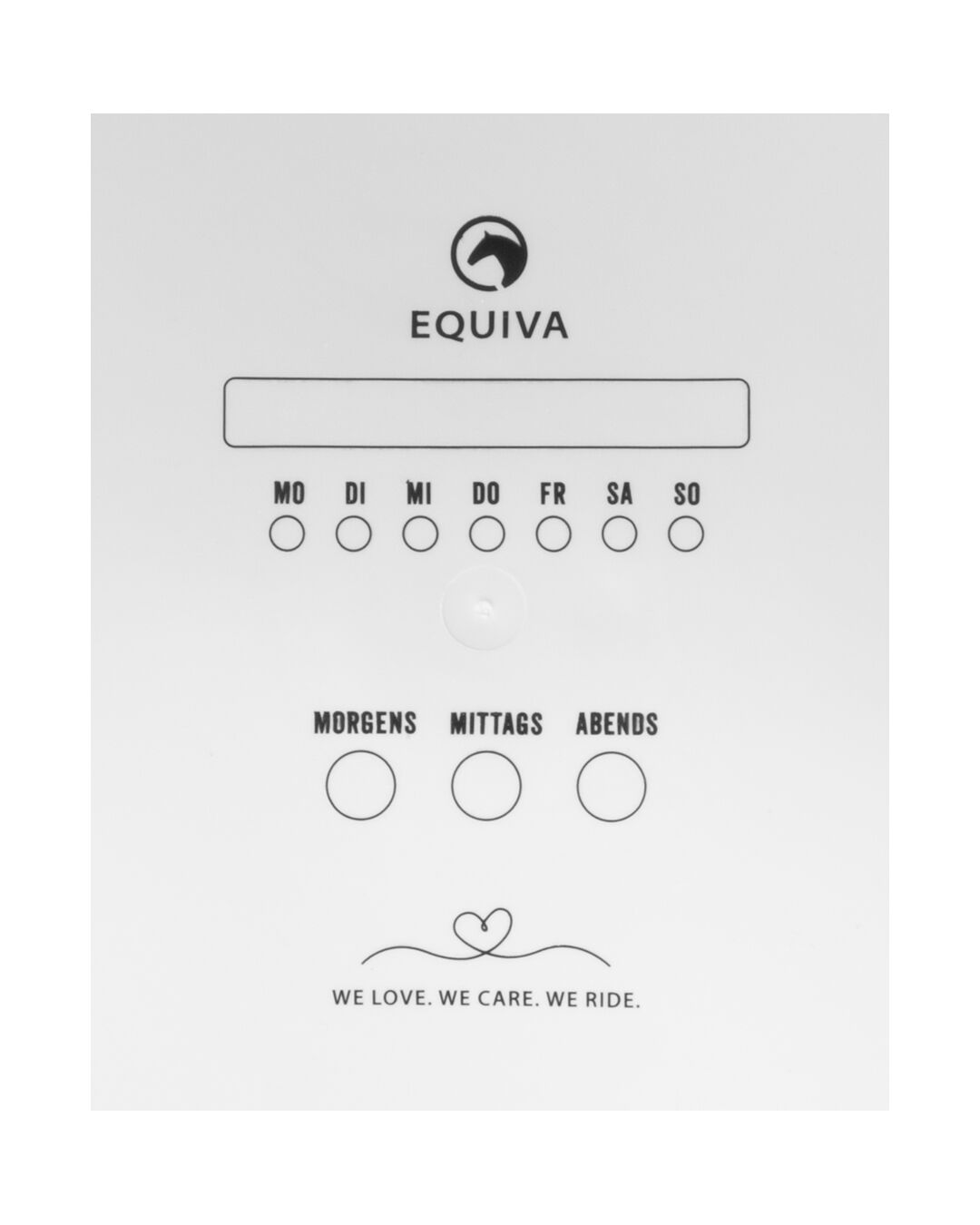 Dieser Deckel, passend für Müslischalen von EQUIVA, GOLDHORSE und Soulhorse, ist nicht nur ein nützliches Zubehör für dein Futtermanagement, sondern auch ein zuverlässiger Schutz für das Pferdefutter. Er lässt sich leicht beschriften, sodass du genau festhalten kannst, wann und welche Futterration dein Pferd erhalten soll.