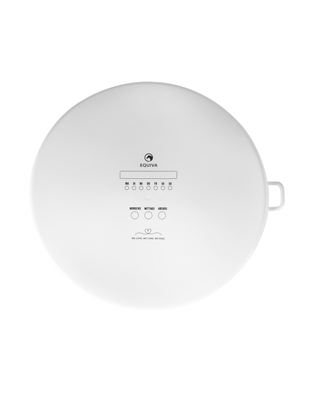 Dieser Deckel, passend für Müslischalen von EQUIVA, GOLDHORSE und Soulhorse, ist nicht nur ein nützliches Zubehör für dein Futtermanagement, sondern auch ein zuverlässiger Schutz für das Pferdefutter. Er lässt sich leicht beschriften, sodass du genau festhalten kannst, wann und welche Futterration dein Pferd erhalten soll.