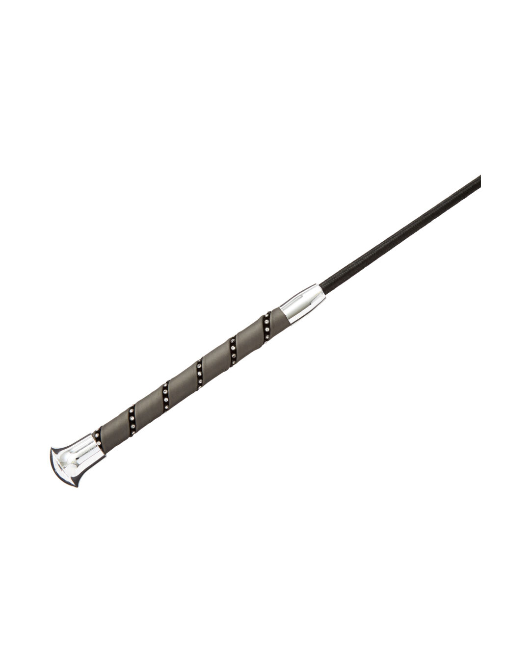 Der weiche Kunstledergriff liegt angenehm in der Hand und sorgt für einen optimalen Halt während des Reitens. Ein besonderes Highlight ist der mit funkelnden Strasssteinen verzierte Griff, der der Gerte einen Hauch von Glamour verleiht. Eine silberne Applikation rundet das elegante Erscheinungsbild ab.