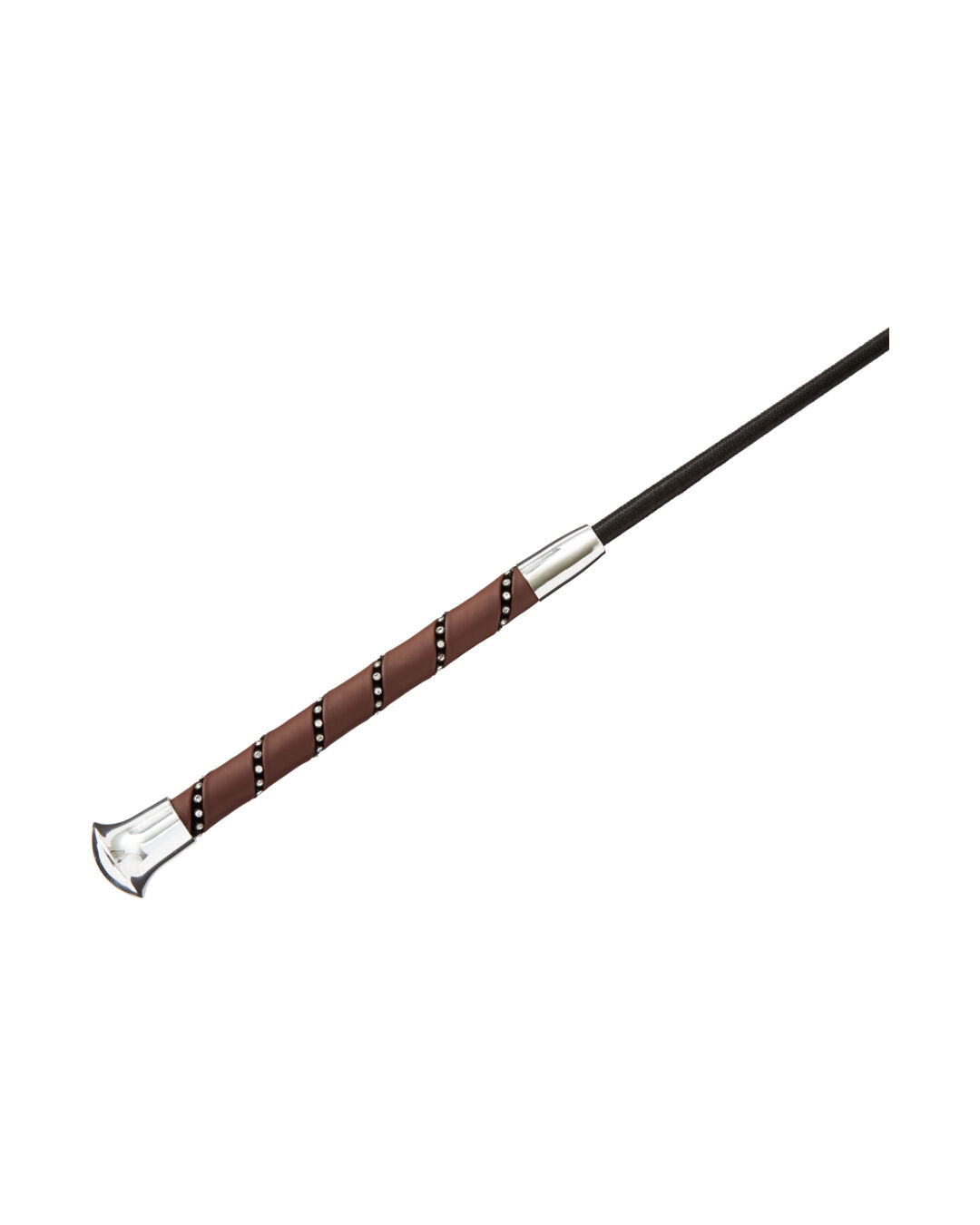 Der weiche Kunstledergriff liegt angenehm in der Hand und sorgt für einen optimalen Halt während des Reitens. Ein besonderes Highlight ist der mit funkelnden Strasssteinen verzierte Griff, der der Gerte einen Hauch von Glamour verleiht. Eine silberne Applikation rundet das elegante Erscheinungsbild ab.