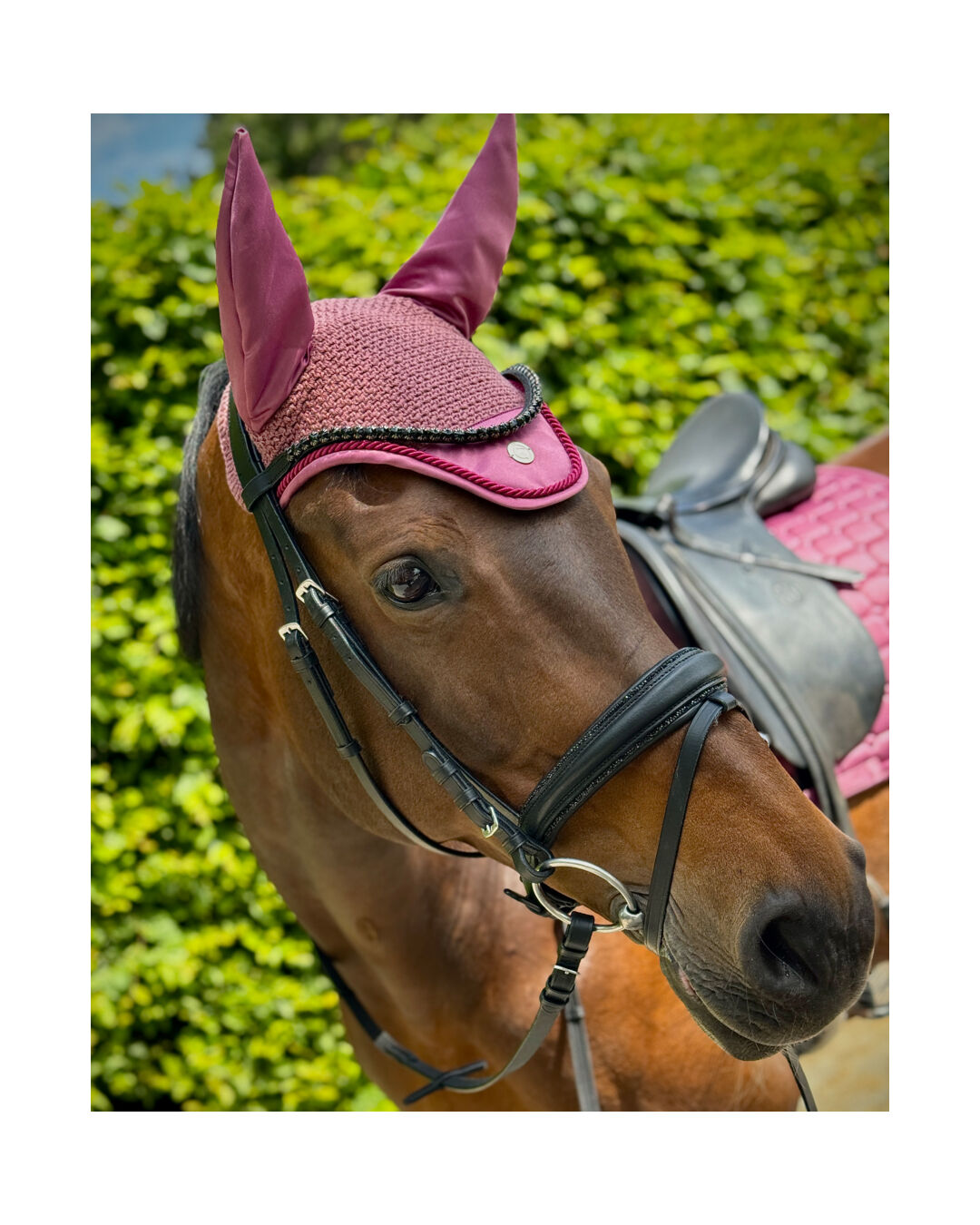 Erhältlich in den Größen Pony, Vollblut und Warmblut, ist diese Fliegenhaube die ideale Wahl für Reiter, die Wert auf Stil und Funktionalität legen.