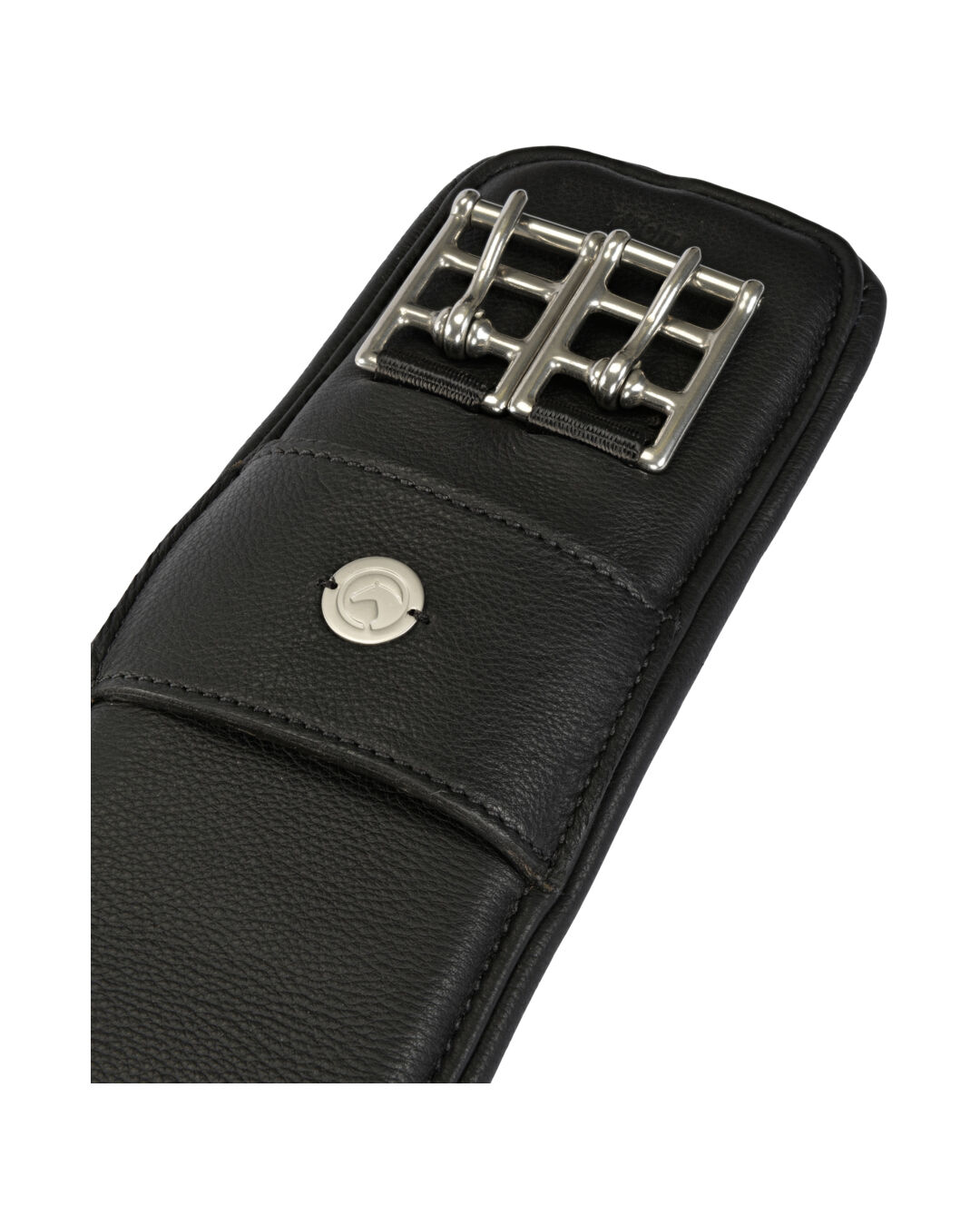 Ein integriertes PP-Band aus Polyester gibt dem Kurzgurt dauerhafte Formstabilität und verhindert ein Verziehen, selbst bei regelmäßiger Belastung. Die robusten Edelstahlbeschläge bieten zusätzliche Sicherheit und machen den Gurt zuverlässig im täglichen Einsatz. Die anatomische Form unterstützt eine gute Gurtlage und lässt dem Pferd ausreichend Bewegungsfreiheit im Schulter- und Ellenbogenbereich.