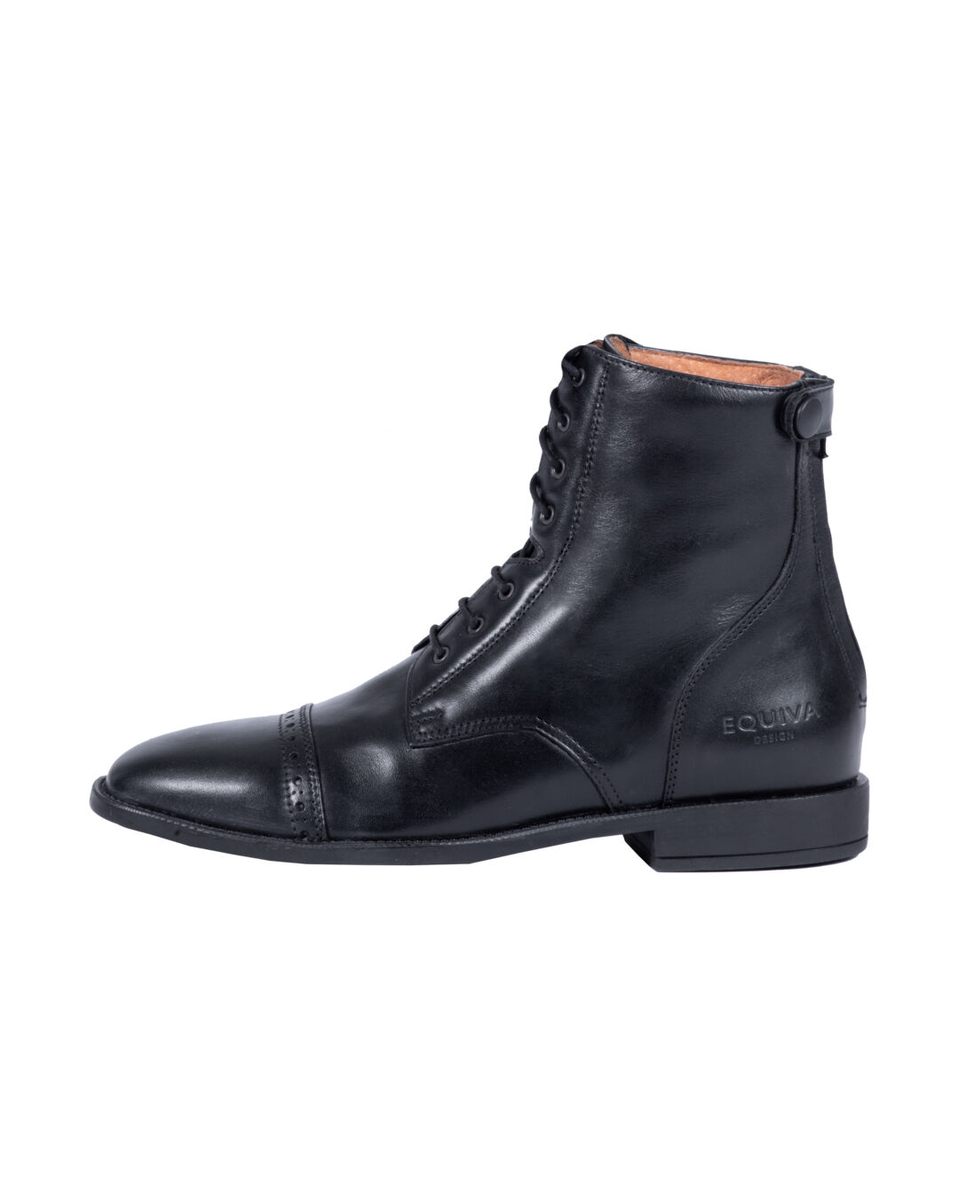 Bei der Reitstiefelette der Marke EQUIVA handelt es sich um eine schlichte Schnürstiefelette. Der praktische Reißverschluss erleichtert das An- und Ausziehen der Reitstiefelette. Die Stiefelette ist aus hochwertigem italienischen Leder gefertigt, das besonders weich ist. Des Weiteren ist der Schuh mit einem Innen-Lining aus hochwertigem Kuhleder ausgestattet. Die Reitstiefelette eignet sich als idealer Begleiter im Stall und in der Freizeit. Durch die neue Sohle ist die Stiefelette eine klassisch und elegante Stiefelette.
