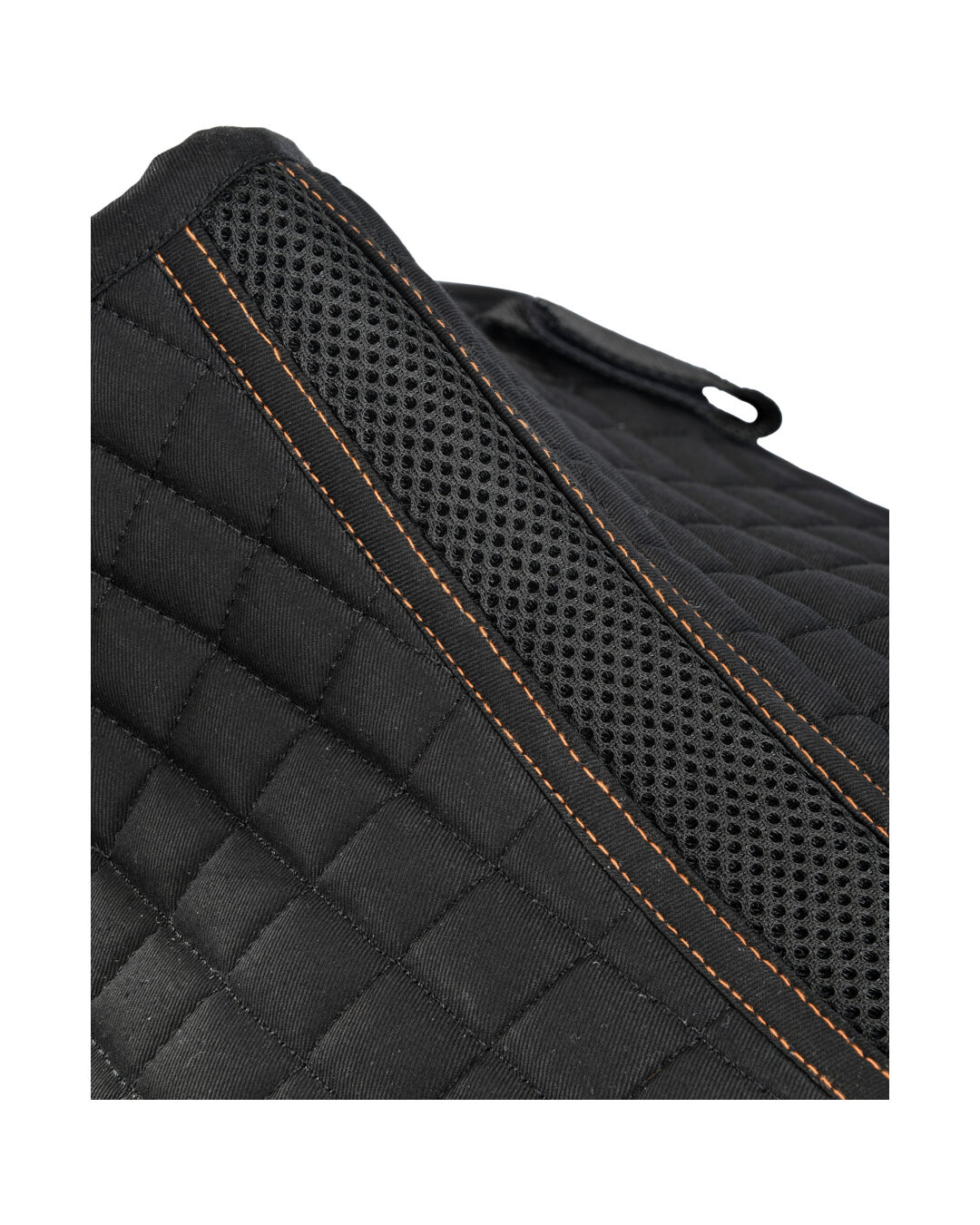 Zusätzlich sorgt die Mesh-Einlage entlang der Wirbelsäule für eine verbesserte Atmungsaktivität, was gerade bei intensiven Trainingseinheiten wichtig ist. Die Schabracke ist mit Sattel- und Gurtschlaufen mit Klettverschluss ausgestattet, die für eine sichere Fixierung am Sattel sorgen und das Verrutschen verhindern.