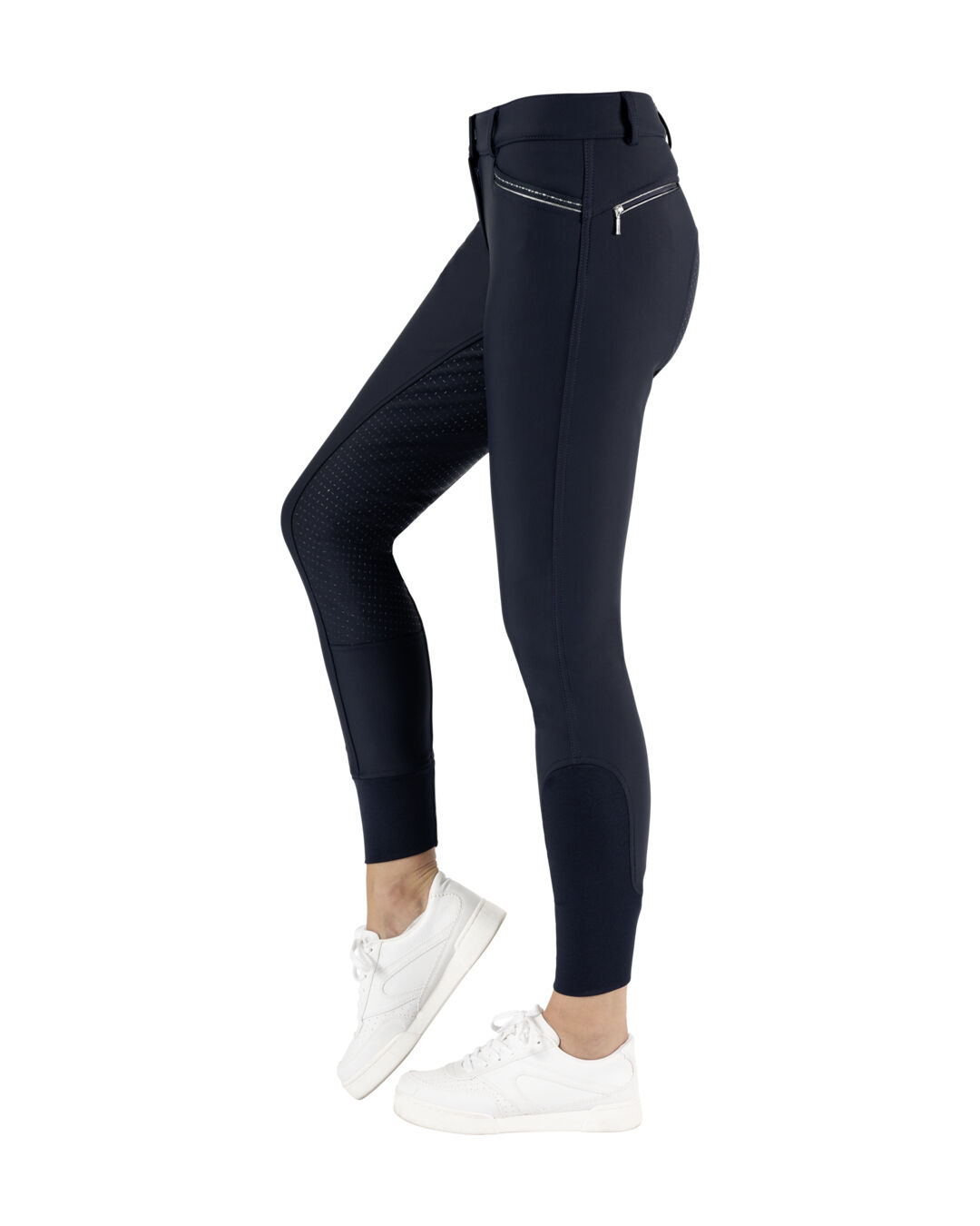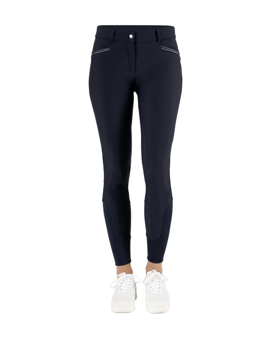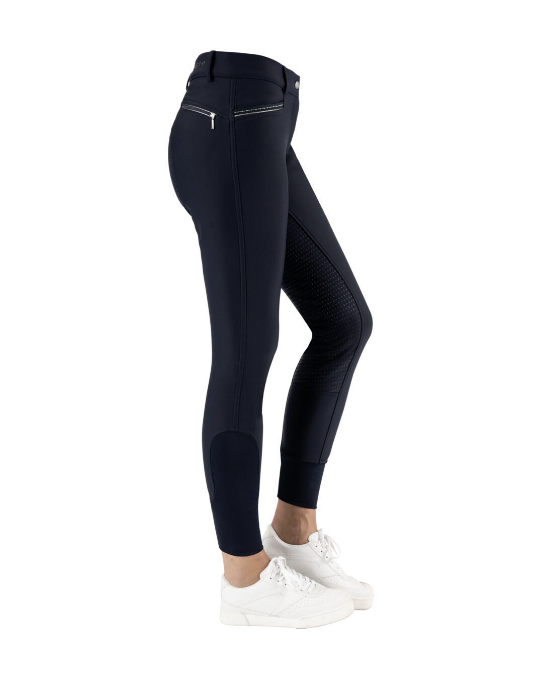 Die Reithose ist atmungsaktiv und schnell trocknend, sodass du dich auch bei intensiven Reiteinheiten wohlfühlst. Der Vollbesatz aus Silikon sorgt für einen sicheren Halt im Sattel.