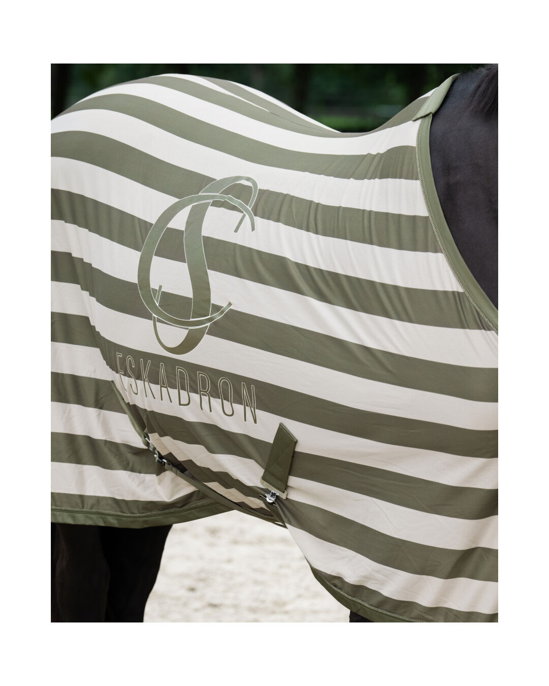 Optisch überzeugt die Decke mit dem beidseitigen Eskadron-Print und einer dezenten Kordel auf Glossy-Einfassung, die dem Design eine edle Note verleiht. Für den perfekten Sitz sorgt die Doppelbrustverschnallung mit Klettfixierung, während die abnehmbare Kreuzbegurtung und der integrierte Schweifriemen dafür sorgen, dass die Decke auch bei Bewegung sicher an Ort und Stelle bleibt.