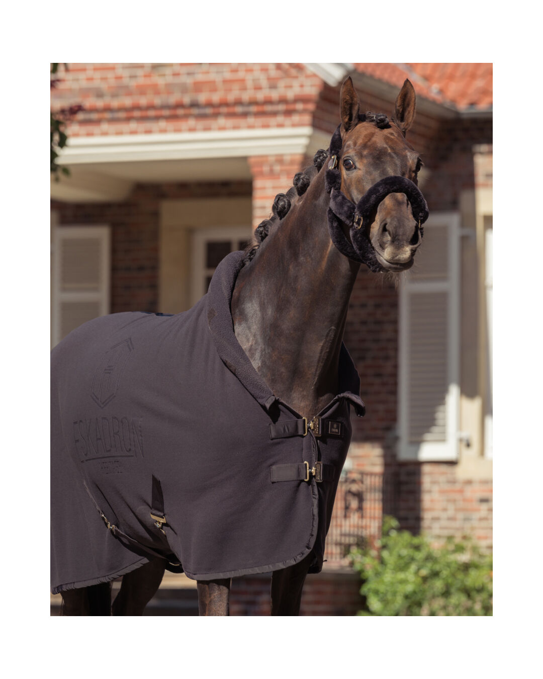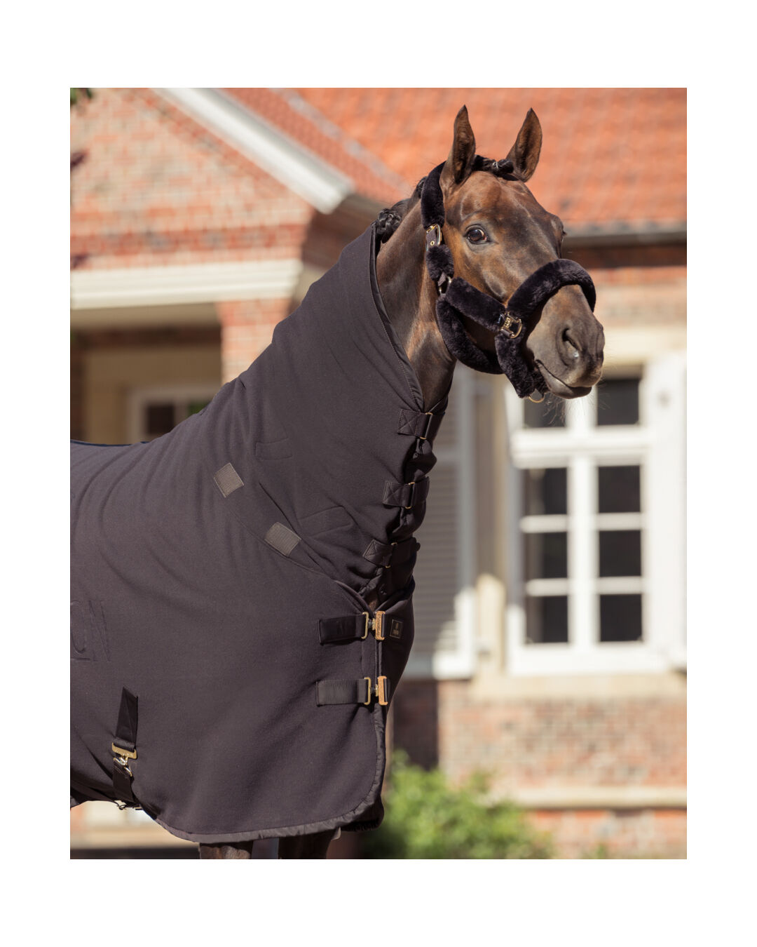 Das hochwertige Double-Fleece-Obermaterial hält angenehm warm und transportiert Feuchtigkeit effektiv nach außen. Innen sorgt die kuschelige Teddyfleece-Unterseite für weichen Kontakt zur Pferdehaut und unterstützt ein gleichmäßiges Trocknen nach dem Reiten.
