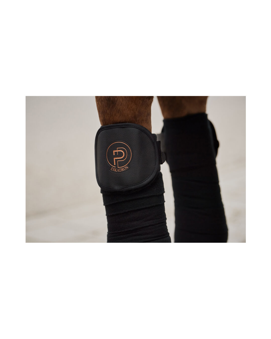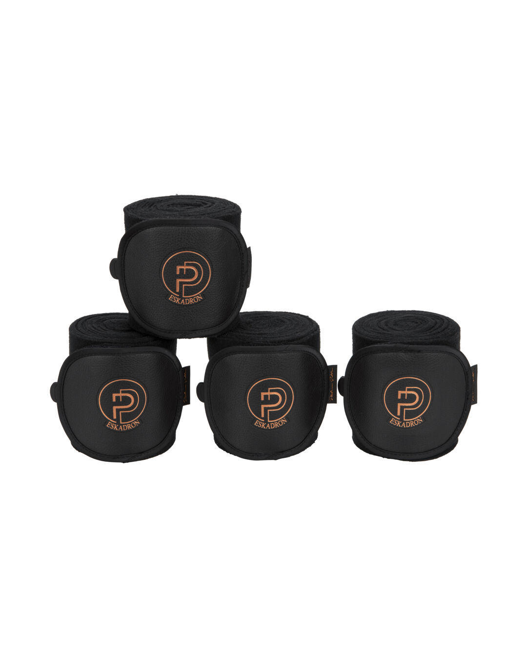Eskadron Bandagen FLEECE FAUX LEATHER PLATINUM 23 - perfekt für jeden Reiter, der auf der Suche nach hochwertigen und stilvollen Bandagen ist. Dieses Set besteht aus vier elastischen Fleecebandagen, die in einer hochwertigen Faux Leather-Aufbewahrungstasche verpackt sind.