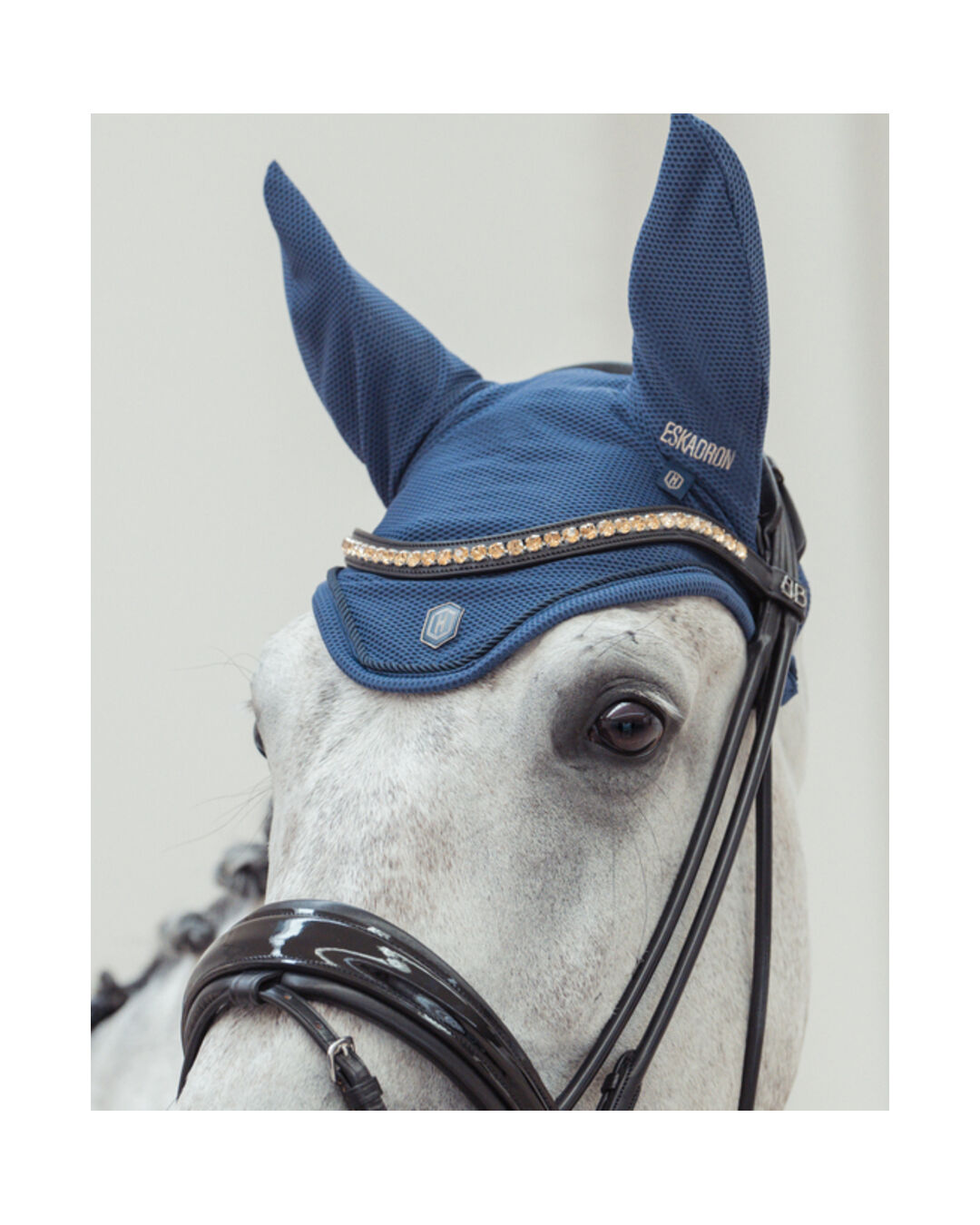 Das Material ist besonders luftdurchlässig und atmungsaktiv, sodass dein Pferd auch an heißen Tagen optimal belüftet wird und sich wohlfühlt. Die dezente, ton-in-ton gehaltene Kordel verleiht der Fliegenhaube einen eleganten und unaufdringlichen Look, der durch das Heritage-Emblem und den Eskadron-Schriftzug auf dem Ohr stilvoll abgerundet wird.
