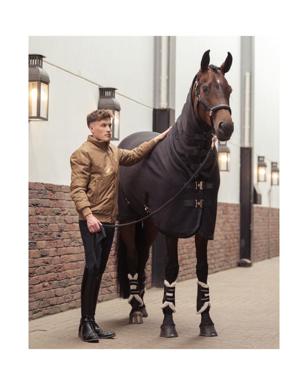Der Führstrick ist mit einem Qualitäts-Panikhaken versehen, der sich schnell und sicher am Halfter befestigen lässt. Die goldenen Metallbeschläge verleihen dem Strick eine edle Optik und unterstreichen seine hochwertige Verarbeitung. Ein besonderer Hingucker ist der Heritage Metall-Anhänger, der dem Strick eine exklusive Note verleiht.