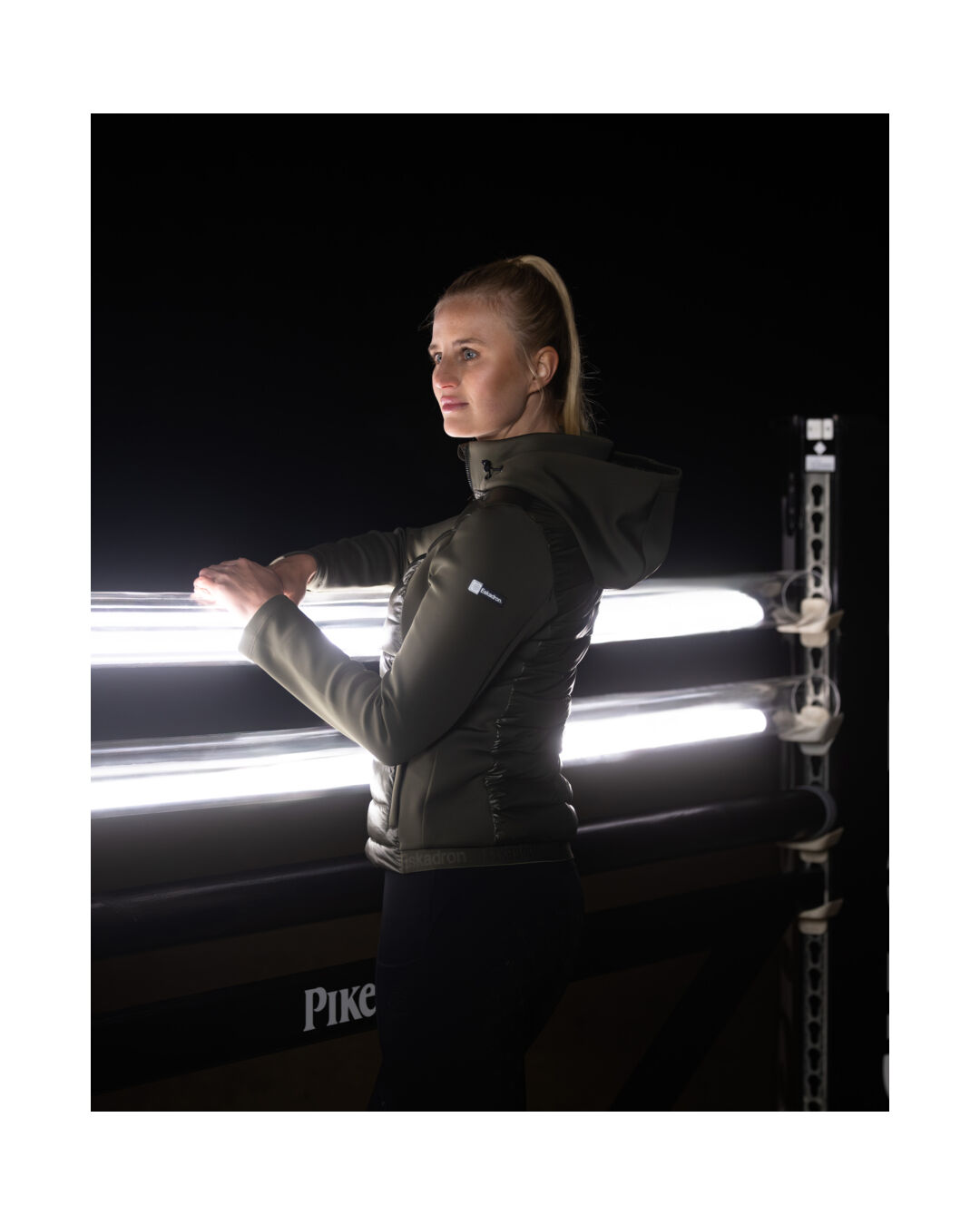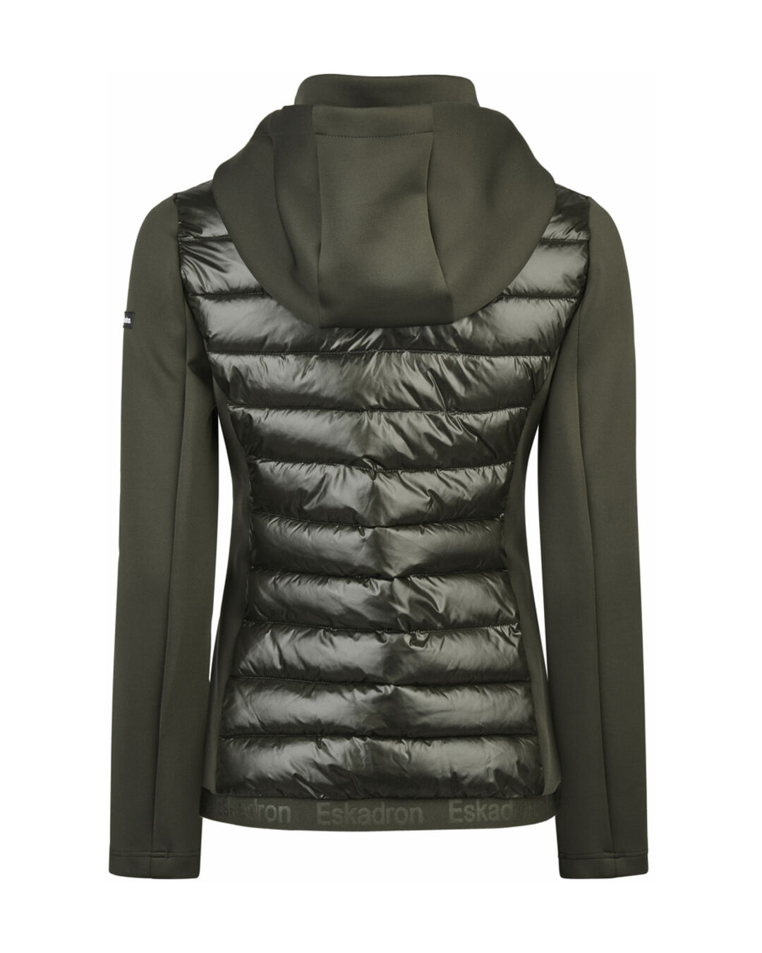 Praktische Details wie der 2-Wege-Reißverschluss und seitliche Pattentaschen mit Reißverschlüssen machen die Jacke besonders alltagstauglich – egal ob im Stall oder unterwegs. Ein elastisches Eskadron-Tape am Saum sorgt für einen sauberen Abschluss, während Brustprint, Ärmelaufdruck und das Badge auf der Rückseite den typischen Eskadron-Look unterstreichen.