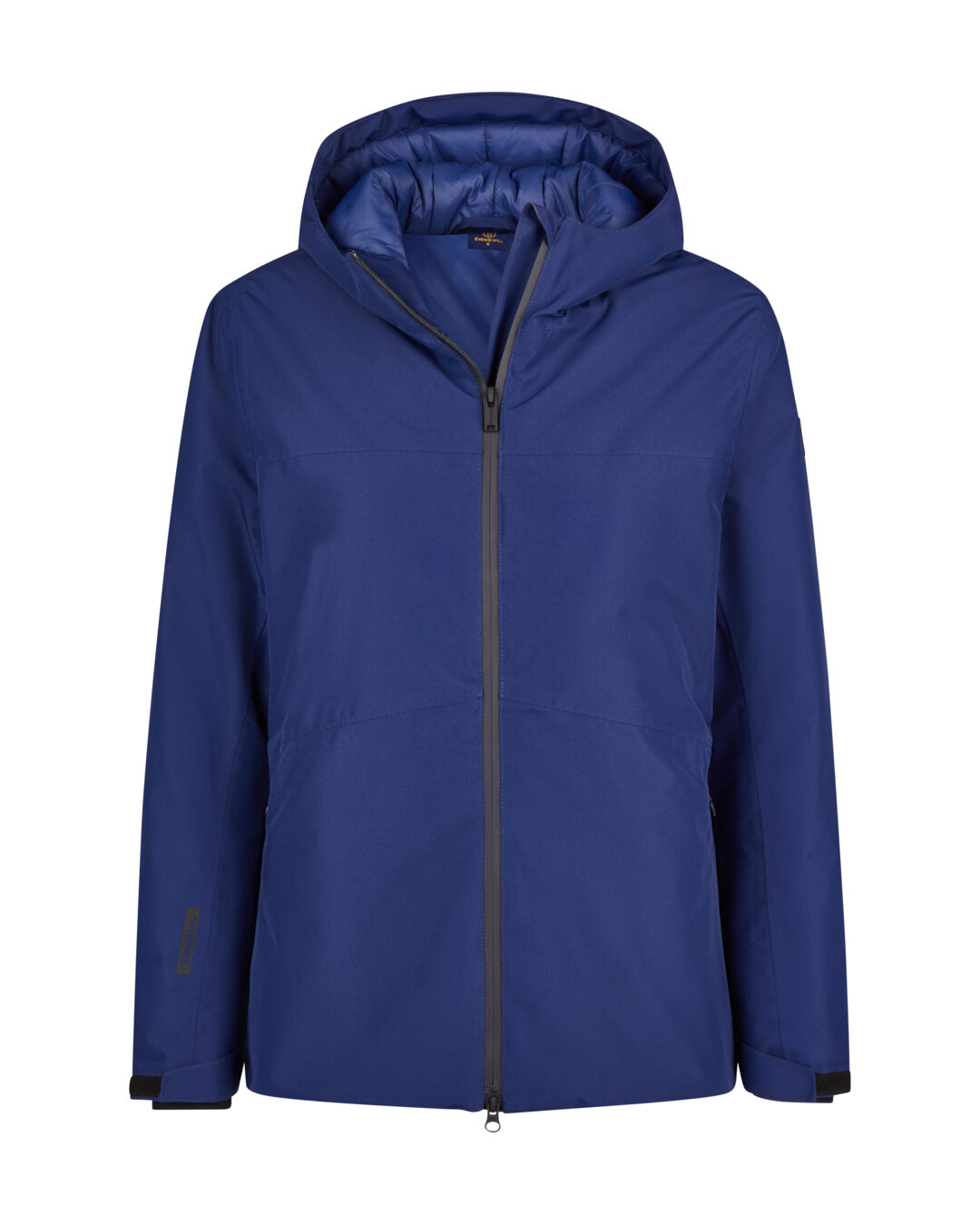 Die feste Kapuze mit Verstellmöglichkeit im hinteren Bereich sorgt für optimalen Sitz, während der wasserdichte 2-Wege-Reißverschluss mit Kinnschutz zusätzliche Sicherheit bietet. Seitlich verdeckte Reißverschlusstaschen und Ventilationsösen im Achselbereich unterstreichen die durchdachte Funktionalität dieser Jacke. Für höchsten Tragekomfort verfügt die Jacke über eine wärmende Wattierung, eine verstellbare Taille mit Kordelzug und Stopper sowie funktionelle Seitenschlitze mit Reißverschlüssen.