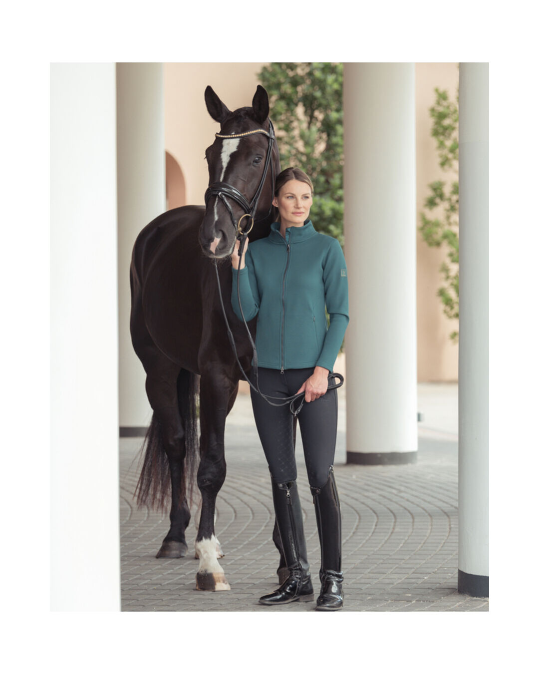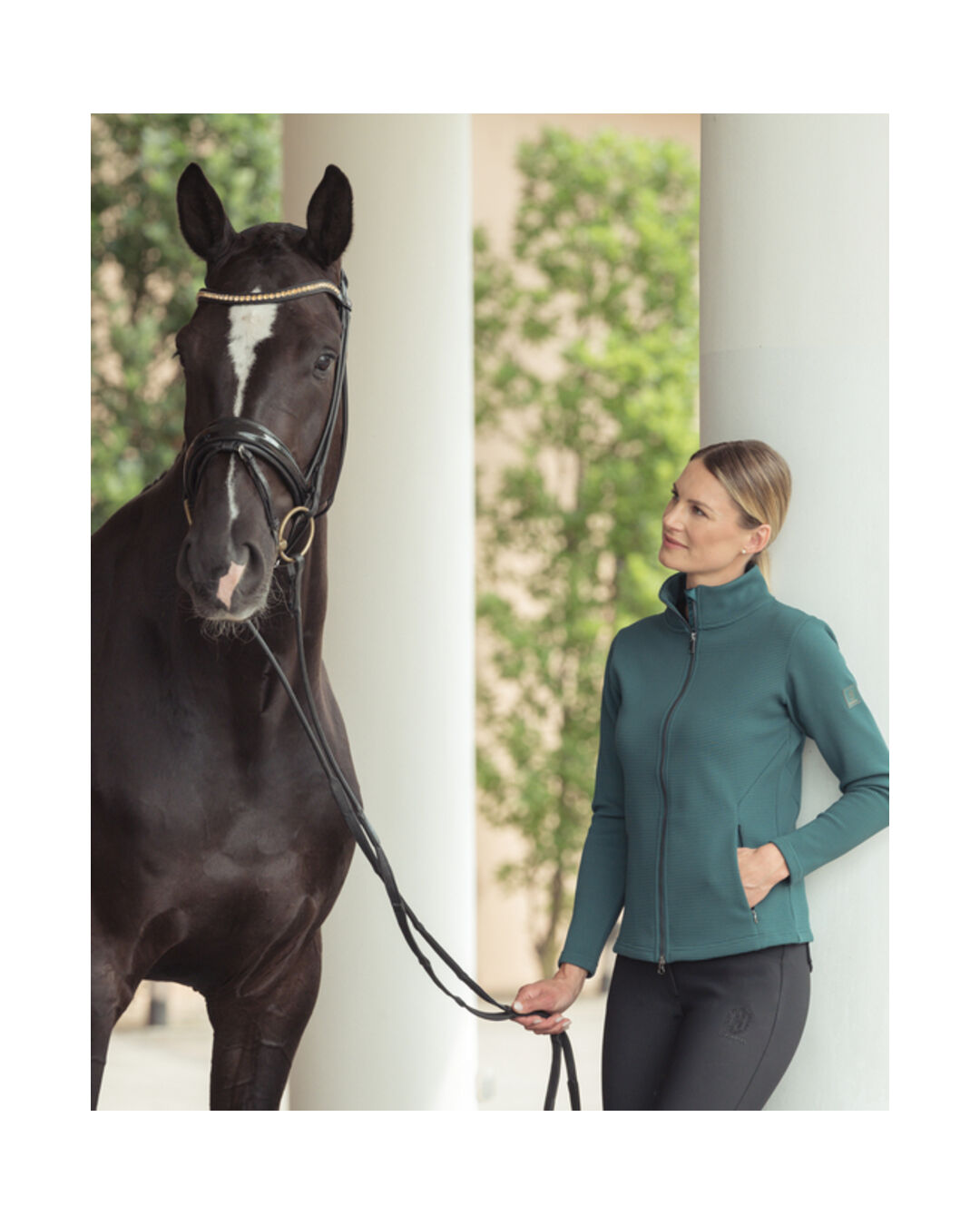Nahtverdeckte Reißverschlusstaschen sorgen für sicheren Stauraum, während die atmungsaktive Materialstruktur eine optimale Luftzirkulation ermöglicht – ideal für sportliche Aktivitäten oder lange Stunden im Stall. Das Heritage-Emblem auf dem Ärmel und der Rückseite rundet das Design edel ab und macht dieses Funktionsshirt zu einem perfekten Begleiter in der Eskadron Heritage-Kollektion.
