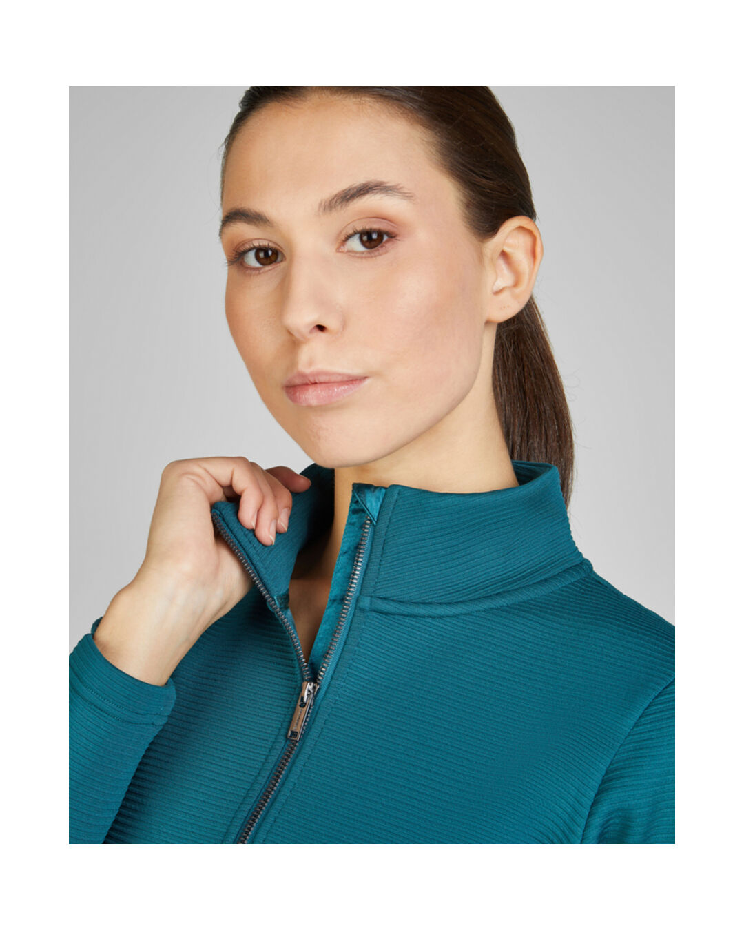 Mit seiner einzigartigen Rippstruktur und der kuscheligen Faux Fur-Innenseite hält es dich warm und sorgt gleichzeitig für hohen Tragekomfort. Der Stehkragen mit Ton-in-Ton Eskadron-Applikation verleiht dem Shirt einen eleganten Look, und der praktische 2-Wege-Reißverschluss bietet dir Flexibilität und Bequemlichkeit.